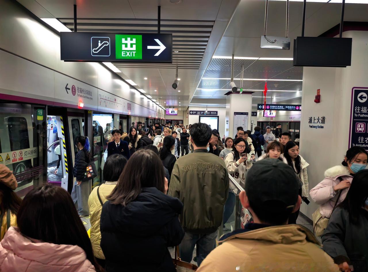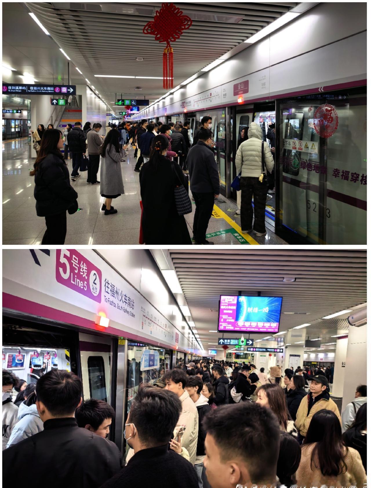 18:01,2号线西洋站往鼓山方向出站情况(图1)。 18:04,2号线西洋→宁化(大学城方向,图2)。 18:09,祥坂→金祥(图3)。 18:13-15,2号线金山站换乘5号线,以及5号线金山站往火车南站方向候车客流(图4-5)。 18:16,金山→凤岗里(图6)。 18:19-21,浦上大道站出站情况(图7-8)。 18:18,洪塘站4号线换乘5号线情况(图9)。 18:20,5号线洪塘站往火车南站方向候车客流(图10)。