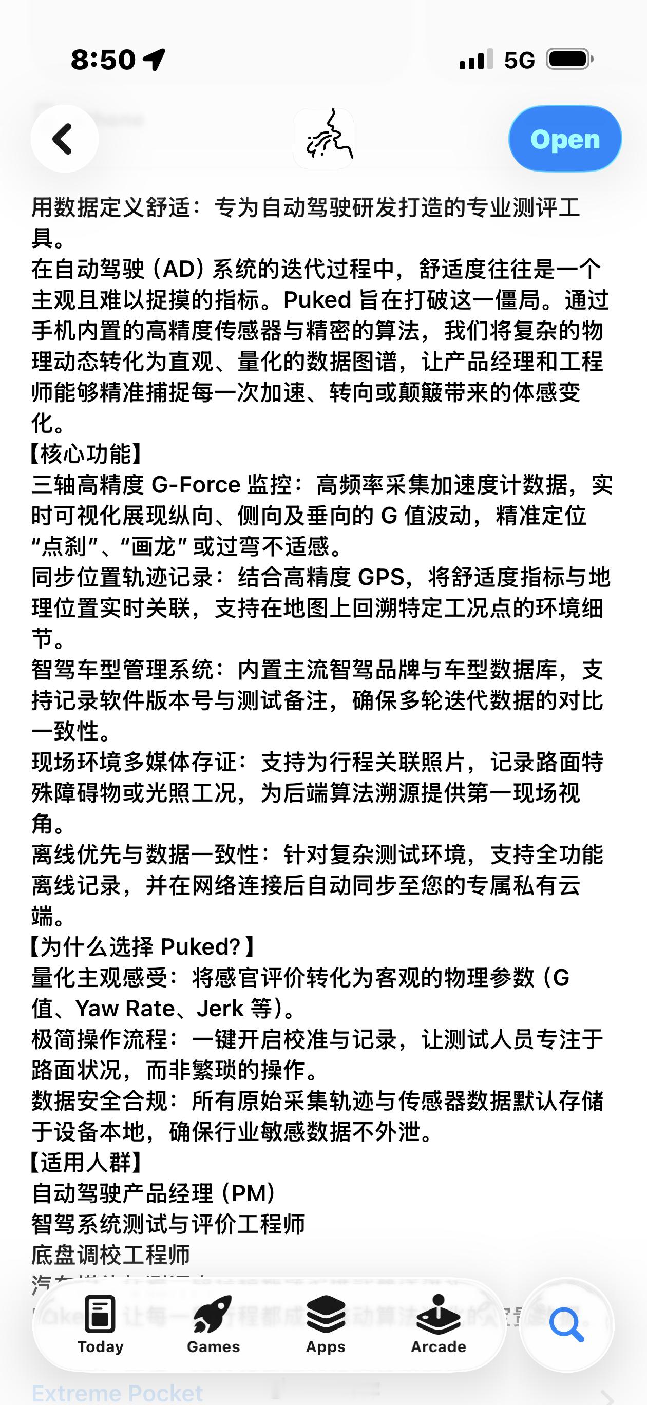 最近开发了一款评测辅助驾驶/自动驾驶舒适度的App,名叫Puked。手机固定