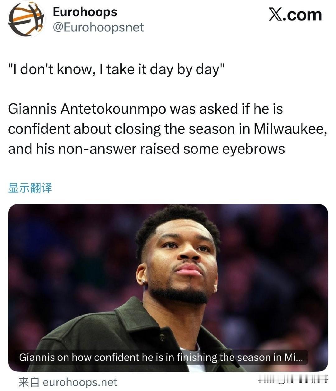 不自信了!!!字母哥能否在雄鹿打完本赛季,他自己也不知道! 近日,雄鹿超级球星