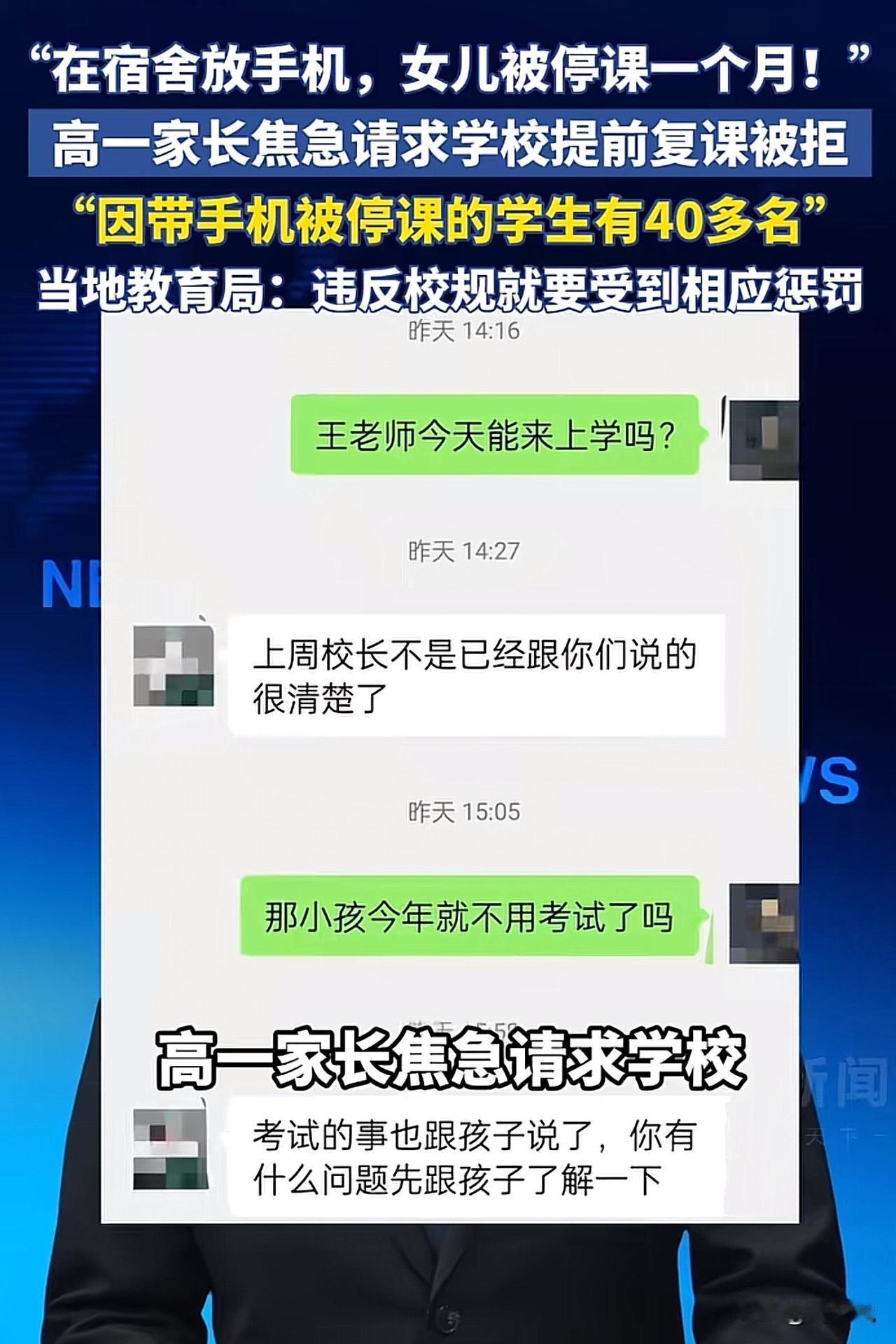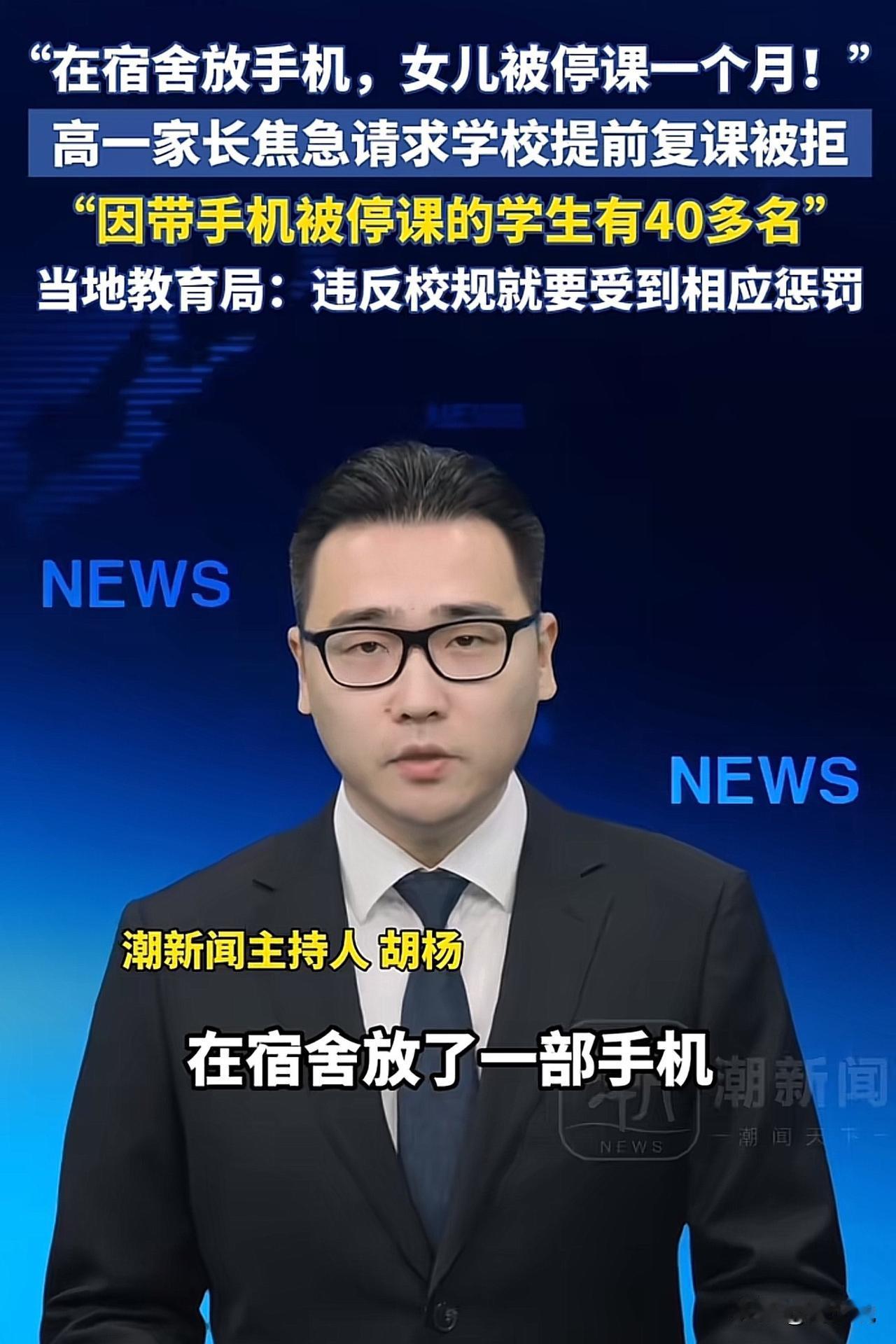 #媒体评学生宿舍放手机被停课一个月#“简直难以置信!”据媒体报道,陕西柞水一名高一女生因在宿舍藏手机,被学校依规停课一个月,家长多次求情申请提前复课均被拒绝,无奈向媒体求助,此事一经曝光便引发全网热议。 据悉,女生带手机是为方便和离异父亲联系、收取伙食费,此前曾多次将手机交老师保管被拒,无奈带回宿舍才被宿管发现,同校还有数十名学生因同款问题被停课,最长要到2月7日才能返校。 家长坦言认罚,但直言停课一个月会严重耽误孩子学业,孩子入学后成绩已从900名提升至600名,如今停滞不前实在可惜。对此学校坚持按校规执行,教育局则表示学校规定有一定合理性,是为统一管理,后续会核实情况。 此事网友看法不一,有网友说:“学校管手机没错,但停课太极端了,这是剥夺孩子的受教育权”! 也有网友认为:“特殊情况该特殊处理,孩子带手机不是为玩,学校的管理太僵化了”! 还有网友则表示:“家校沟通不到位,老师不收手机也该有替代方案,不能把难题全推给孩子”。 在周少看来,学校严管学生禁带入学校,以此保证学生专注学习,这份初衷值得理解,但教育的核心从来不是“一刀切”的惩戒,而是灵活有度的引导。 高中生正处于学业关键期,停课一个月的处罚,不仅会让学生落下课程、打乱学习节奏,更可能打击其学习积极性,违背了教育惩戒的初衷。 学校制定校规应兼顾管理性和人性化,对于确有通信需求的学生,可建立规范的手机代管制度,让家长申请、老师统一保管,既守住校园管理底线,又满足学生的合理需求。 同时,家校之间更应做好沟通,面对学生的违规行为,以批评教育、劳动惩戒等方式为主,而非简单的停课处理。教育的本质是育人,唯有刚柔并济、情理兼顾,才能让校规有温度,让惩戒有意义,真正实现家校协同育人的目的。#寻美三湘# #长沙新朋友#