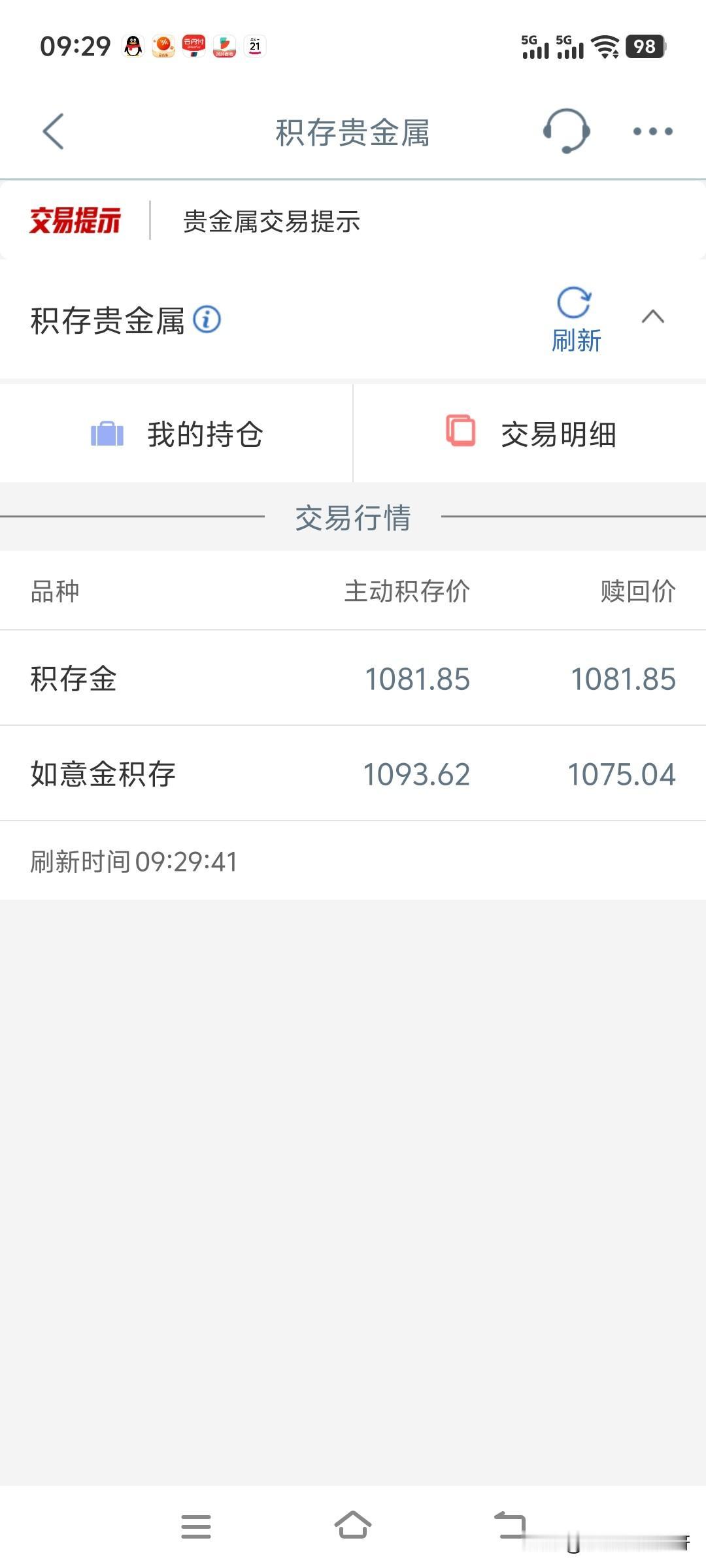 不得了了 金价直彪到1100元/克关口了 早一查询 真被吓到了 积存金1081.85元/克 如意金积存更是达到了1093.62元/克 真是应了那句话, 金价绝对能够达到你想象不到的价位 就这个涨法 今年达到1500元/克绝对不是问题 还有一种可能达到2000元/克 现在你还敢买金吗?