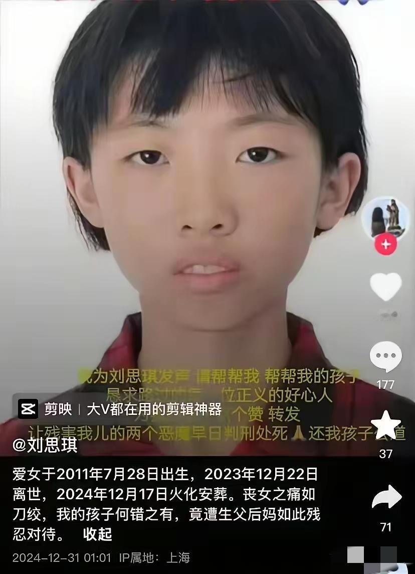 1月20日,最恶毒后妈许金花,被执行死刑!不是后爸的“亲爸”被判13年6个月,两个恶毒夫妻,一个生命画上了句号,一个继续在牢里改造。 这个恶毒后妈的童年生活是很可怜的,也是可怜之人。 这可怜之人必有可恨之处,原来是真的。 这个后妈的童年没有双亲,是在自己姑姑家养大。 原本这样子的人,长大后当了母亲,不是更应该怜悯没有妈妈的小琪吗? 可她没有,她的心理扭曲了。 许金花只有43岁,却于昨天走完了自己矛盾、痛苦的一生! 她自己就是孤苦伶仃,苦孩子长大的,本应该更疼爱孩子才是正常人的心理。 可是她没有这么做。 她曾经嫁过两个男人。 第一个男人离婚了,因为自己没有生育能力,收养了两个孩子。 离婚后,两个孩子都跟着许金花,住在前夫的房子里。 后来,又嫁给小琪的爸爸刘江,刘江带着小琪住进了许金花的房子里。 这第二段婚姻,要了小琪的命要了许金花的命。 第二段婚姻里,许金花把刘江带过来的孩子成了她的出气筒,对小琪下了狠手,毒手。 她不爽了,就暴打折磨小琪,那手段让人发指!正常人都不敢看。 这个后妈心太狠了。 后妈狠心的背后,是小琪父亲的默认。 他不但默认了妻子的做法,还帮助妻子买泻药给孩子吃。 当他听到妻子判死刑的时候,他还苦苦哀求法官,说妻子不应该死刑。 这个父亲还是父亲这个称呼吗? 这夫妻俩不就是一丘之貉吗? 说实话,曾经的许金花是生活的受害者,很可怜,无父无母的。 可是,她完全忘记了自己的曾经。 当她长大后,结婚后,变得面目狰狞,自己却反过来成了施害者! 自己曾经淋过雨,却不懂淋雨中的苦难。 许金花的下场,让人讽刺意味深长。 还有二十多天就要过春节了。 许金花不配再拥有这个春节。 可怜的小琪,如果泉下有知,也欣慰了。 天堂里没有这样子的狠心后妈。