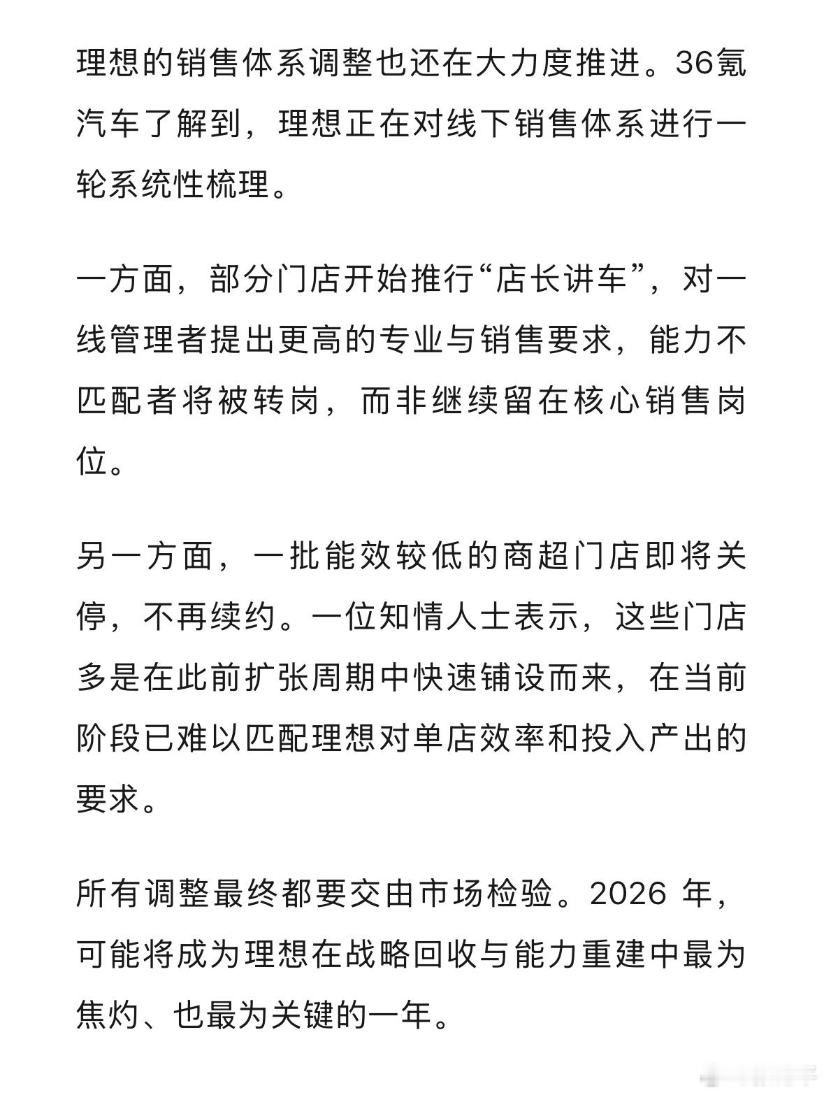 理想2026年的产品重点会回到增程车上,L9进行大升级。另外销售体系也会进行梳理,对店长能力要求更高,关闭低效门店。也就是说,一方面理想确实面临很大压力,一方面也做好了接下来的市场规划,今年应该是至关重要的一年,对理想对外界都是如此。新能源汽车大v聊车