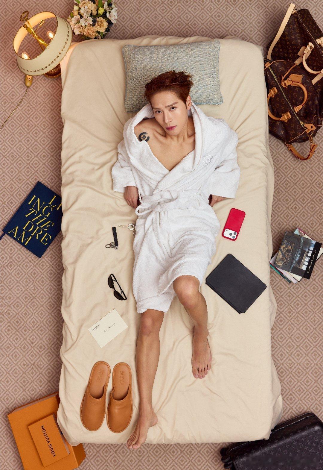 王嘉尔一组看秀造型图,床上大片LV大秀男装周巴黎男装周
