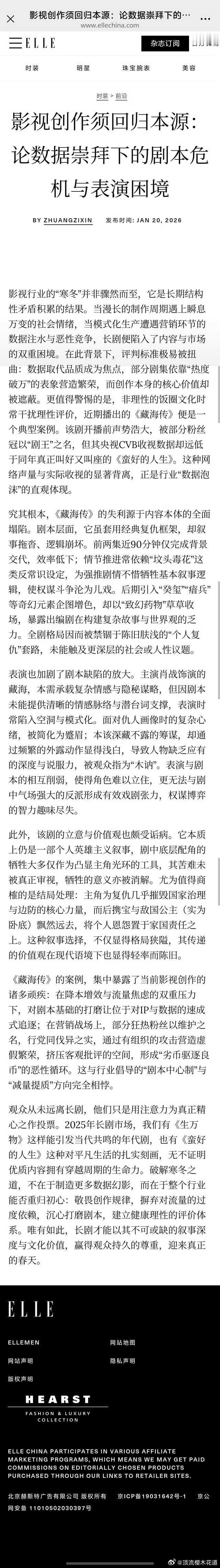 ELLE发文用词:“藏海传的失利……”。怀疑官网被外星人入侵了,这么敢说。