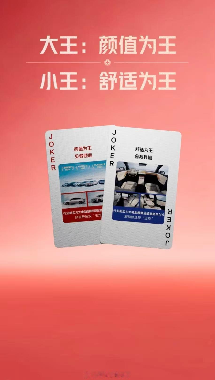 新年伊始,N6推出了大红大紫的马年限定内饰,氛围感拉满。实际能把红色做高级的车型并不多,很多都得是四五十万起步的豪车。而N6这波设计看着真的对眼睛很友好,我相信实车内饰应该更不赖。还有一点小惊喜是收到了东风日产的马年限定扑克牌,非常有意思的礼物,瞬间让我有了斗地主的想法。这套牌还把N6“两个王4个2”的产品价值融入到设计中,寓意着新年好运连连。N6在插混市场也是个“王炸”,颜值高、舒适性强,电池大、油耗低、出行成本低、补能快,非常符合大家对插混轿车的需要。想要入手插混轿车的小伙伴,建议认准这套“两个王4个2”~对东风日产的好印象,还在于合资大厂的服务保障。最近日产还推出了夜间试驾不打烊的服务,如果你时间不方便,店里直接开车上门、或者去机场高铁站接你试驾,就这服务的诚意,你能不心动吗!?新年王炸东风日产叫地主东风日产N6
