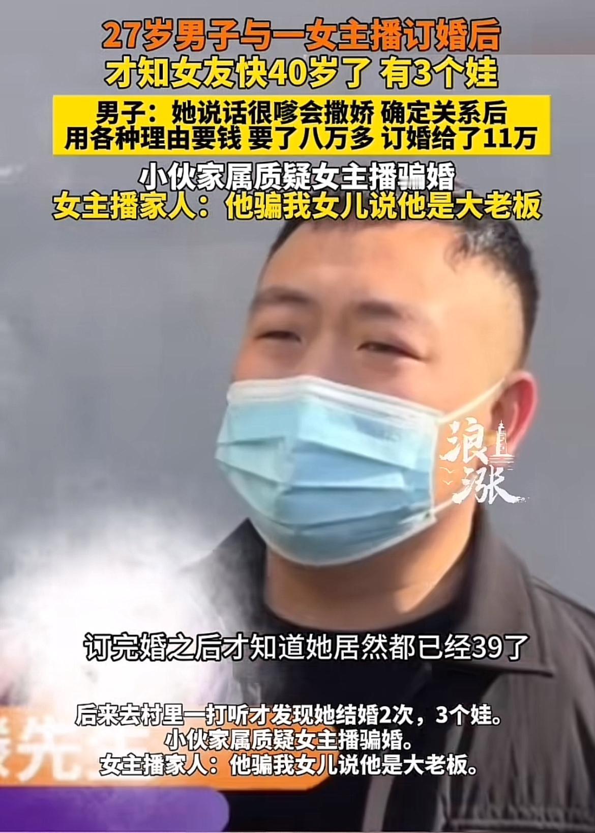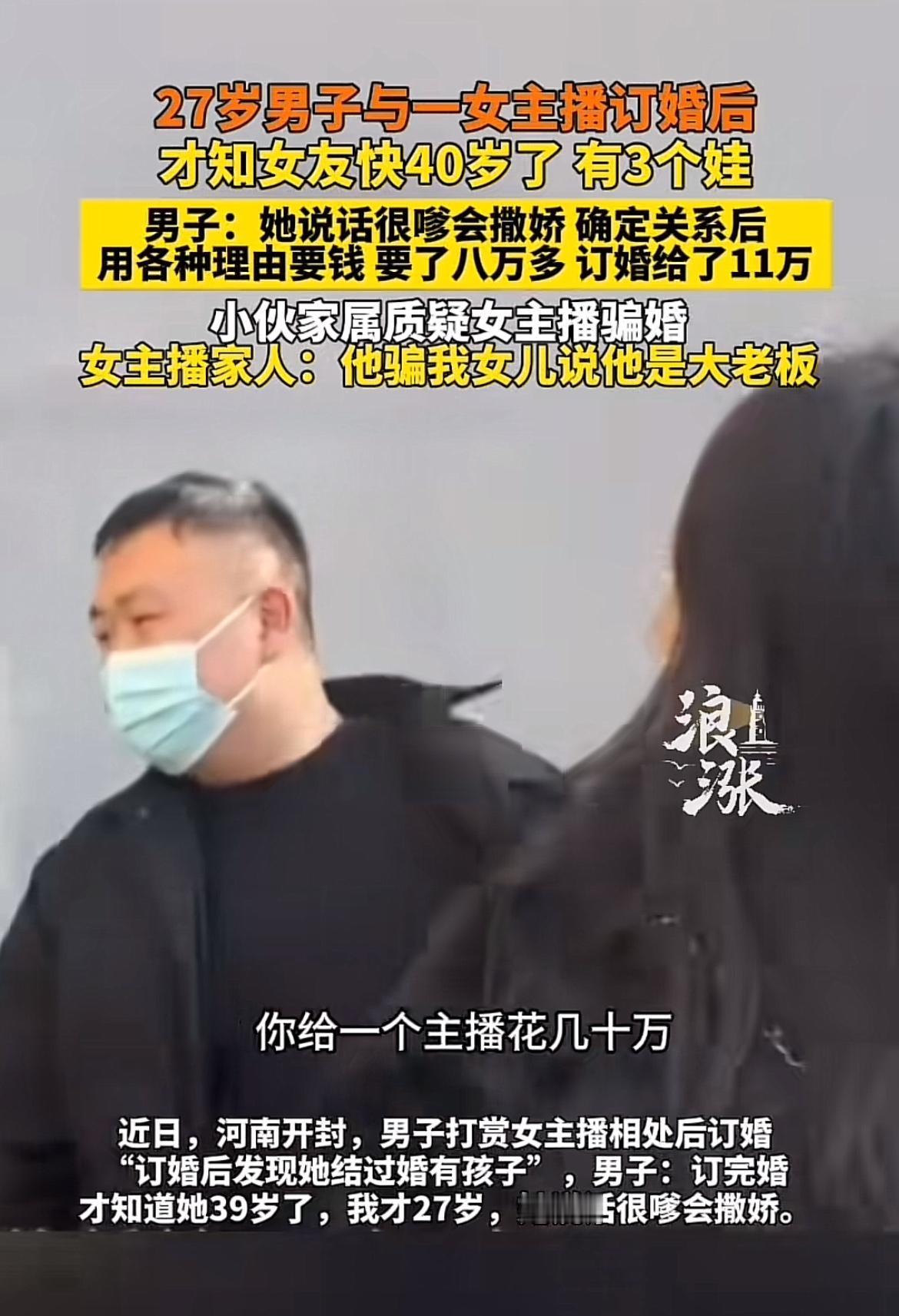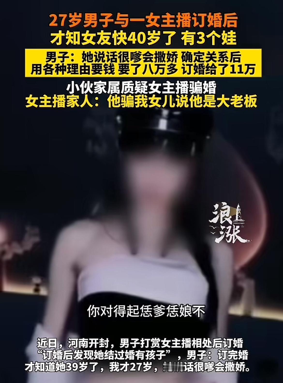 现在的感情骗局真是防不胜防啊!河南开封27岁的滕先生,2023年在网上认识女主播燕儿,在直播间给她打赏好几万,见面后确定恋爱关系,又陆续给了8万多。半年后花11万订婚,结果发现女友结过两次婚,有三个娃,连年龄都是39岁,之前一直被蒙在鼓里。 更离谱的是,订婚后还发现女友和直播间大哥暧昧,索要礼物还称单身,最后女友直接消失。女方父亲却称男方也骗了女儿,说自己是老板、在市中心有房,还说彩礼9万已退还。这事儿双方各执一词,不知道真相到底如何,但滕先生这遭遇真是让人同情又无奈啊。