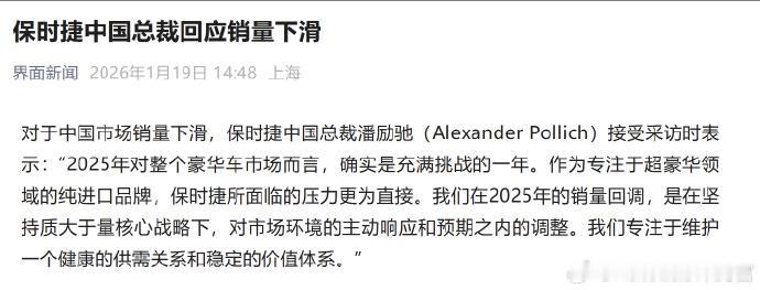 保时捷中国总裁:销量回调是对市场环境的主动响应和预期之内的调整