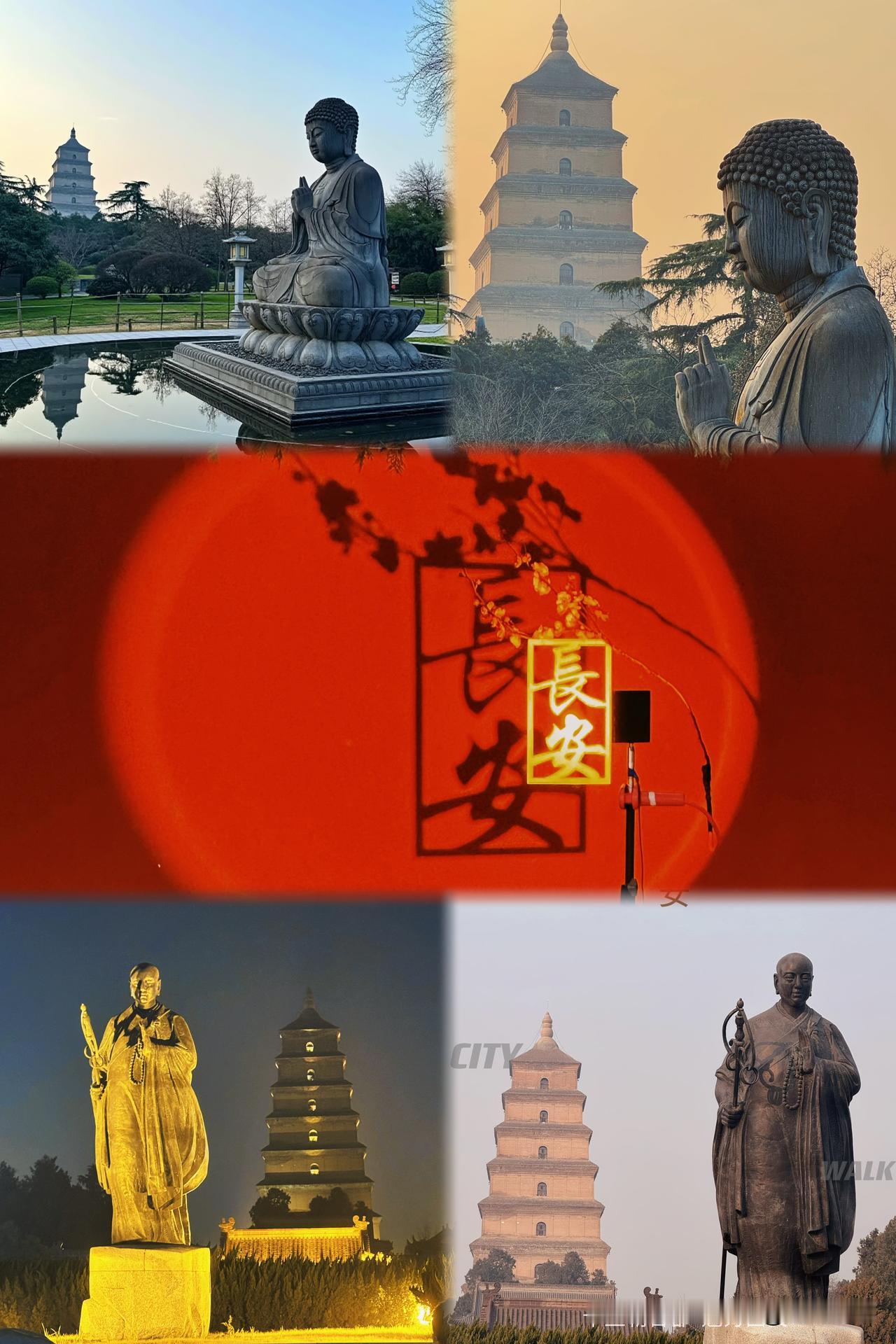 这才是长安该有的样子! 大雁塔立在那儿,佛像的纹路里都裹着老西安的味儿。 你看那红底上的“长安”俩字,跟亮灯的塔、静坐着的佛往一块凑,一下就把那股“老古都的稳当劲儿”给拽出来了。 不是说非得多华丽,就是这塔、这佛往那儿一戳,再配个红得透亮的“长安”,就觉得这地方不光有历史,还有股让人踏实的烟火气——这才是咱心里那座长长久久的长安城啊。