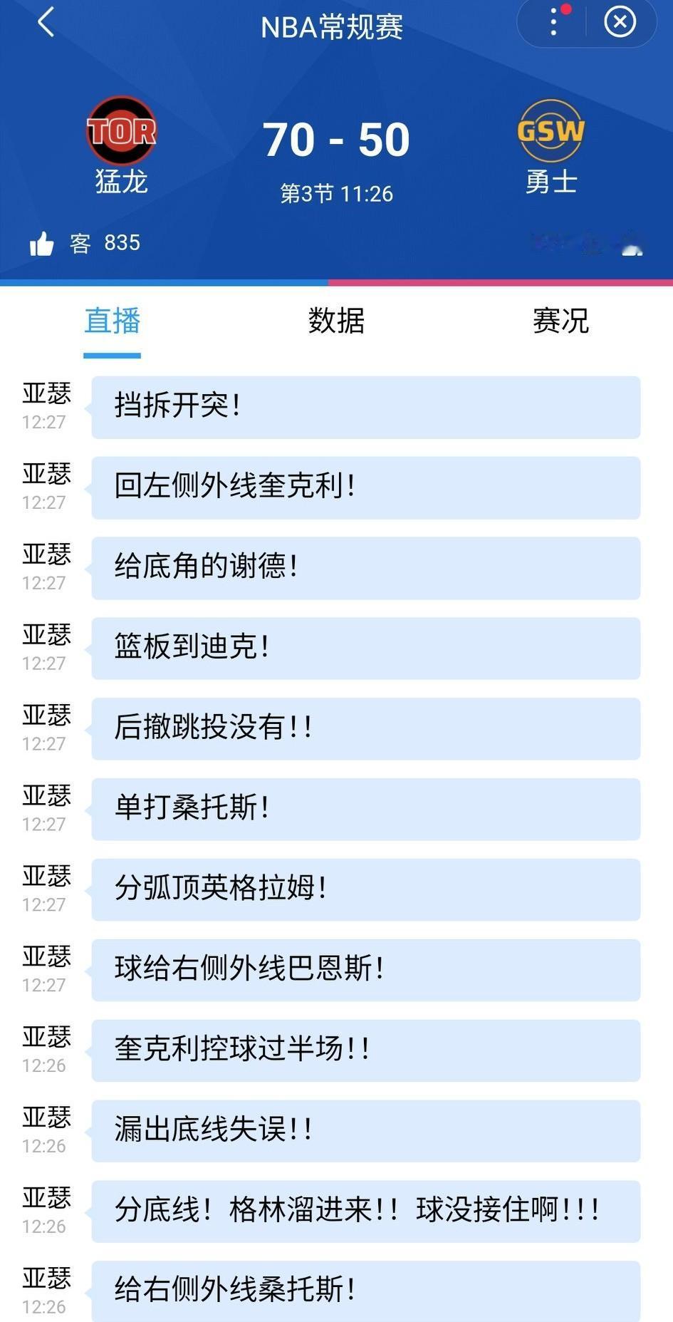 今天又是冷风冷雨愁煞人的一天!太阳赢了、火箭翻了、湖人勇士落后,不会要做噩梦吧,真的要齐聚附加赛区了。 半场结束,湖人57-71掘金 第三节开始,猛龙70-50勇士,果然,缺少巴特勒,勇士不会防守了。