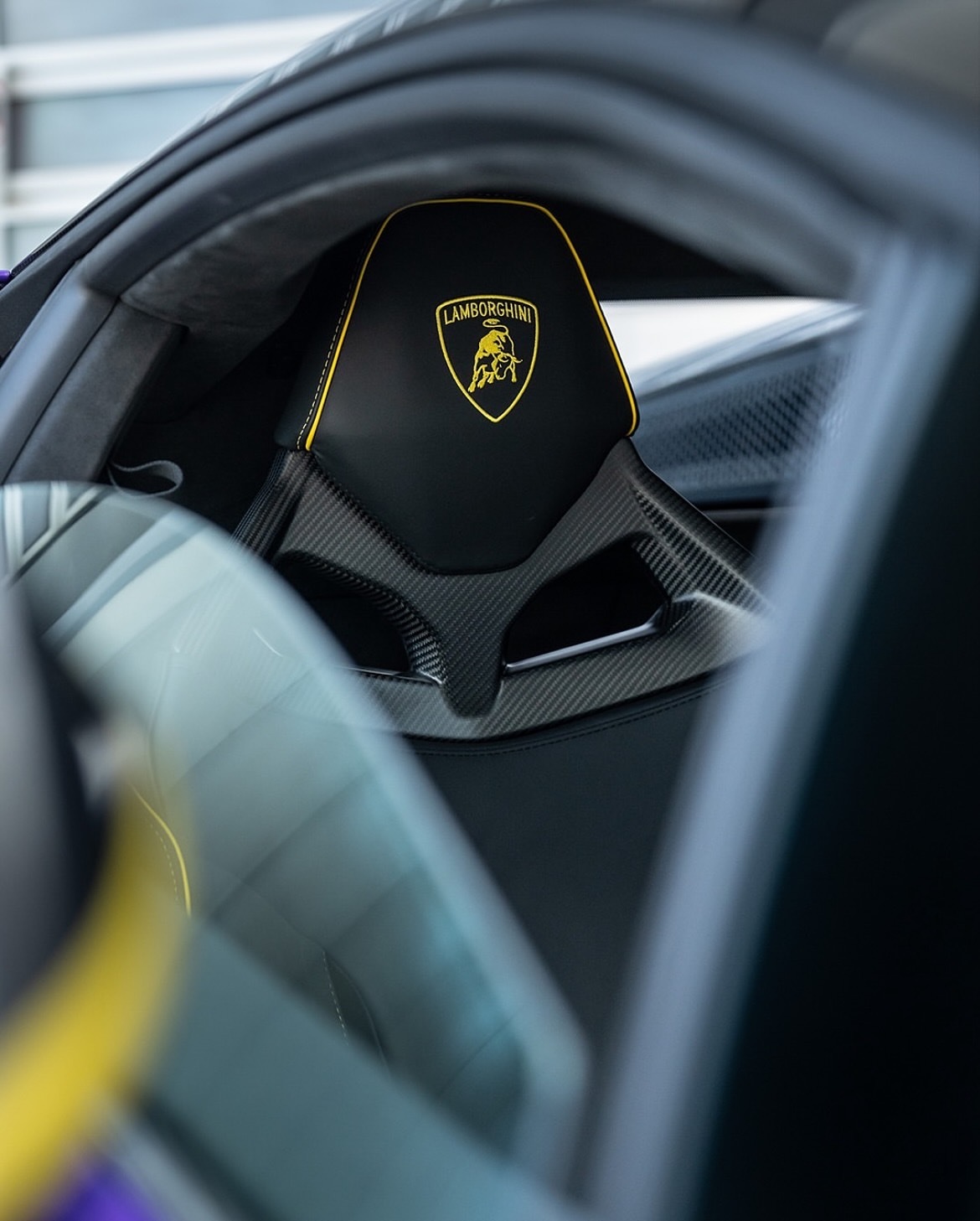 车门镜上的Giallo Belenus装饰,衬托出Viola Pasifae的车身和碳纤维细节,鲜明地展现了V12的精髓。内饰方面,以运动座椅和Nero Ade为主调,Giallo Belenus的装饰点缀其间,与外观相呼应。Revuelto的统一美学贯穿于每一个细节。兰博基尼Revuelto豪车超跑老纪侃车