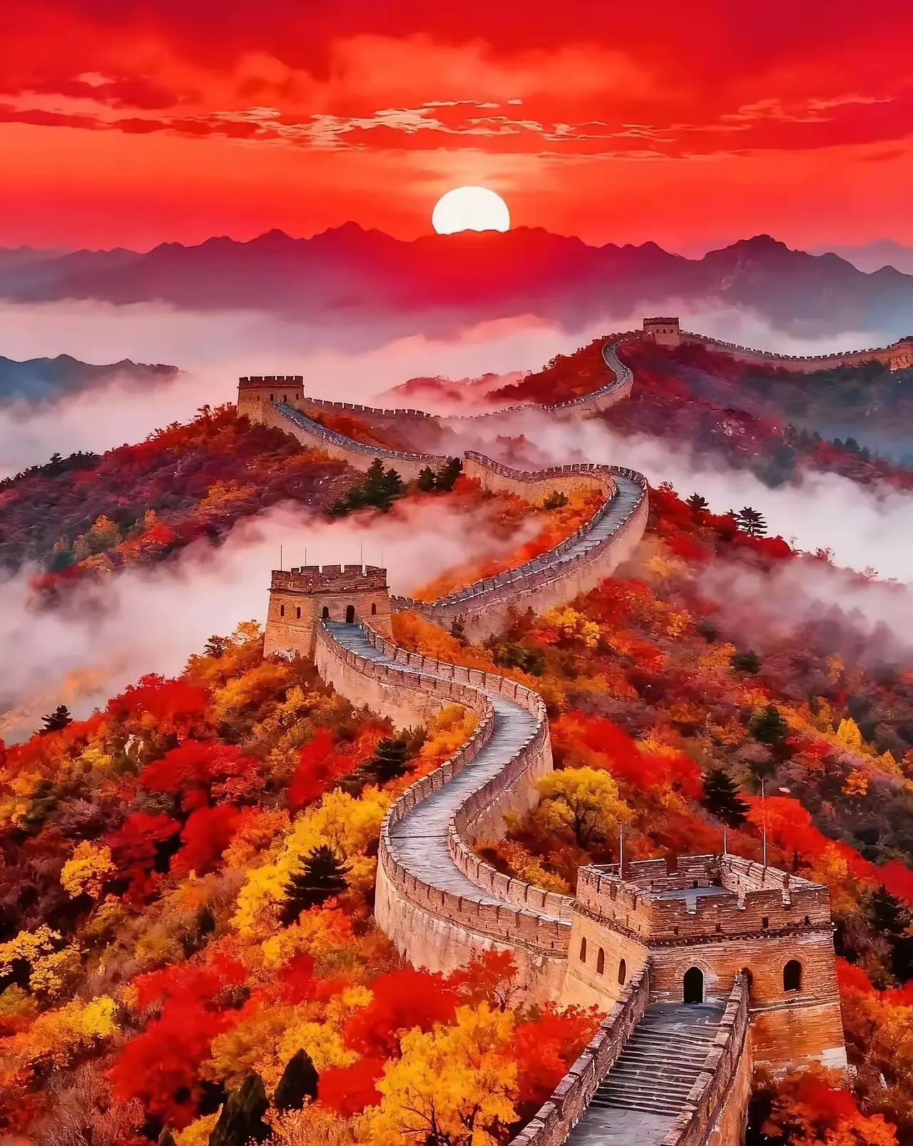 【望山独赏】 一山望罢一山高, 绝顶风光各自娆。 目眩难择何处好, 万里长城风光俏。