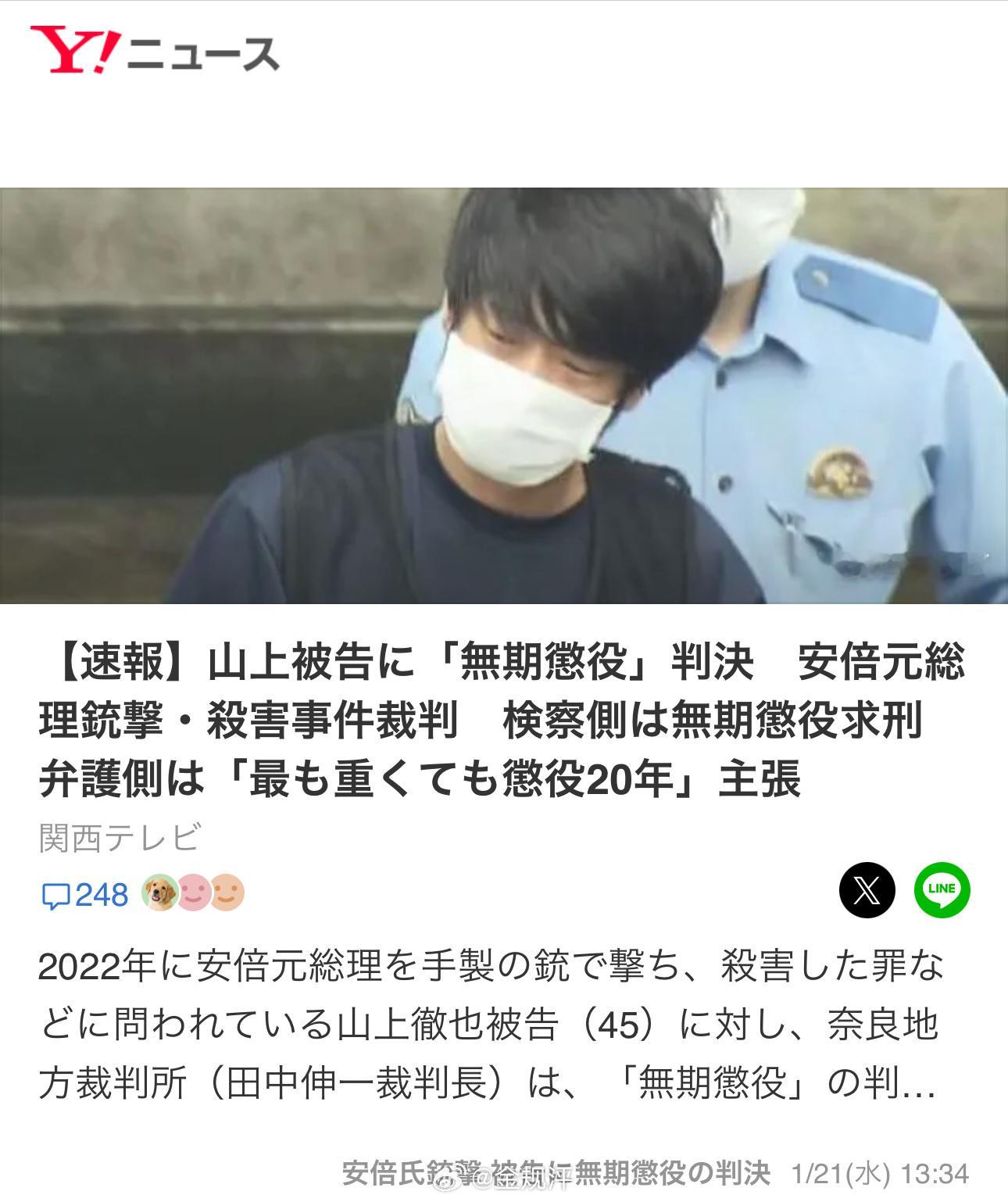 山上徹也君获判无期徒刑。