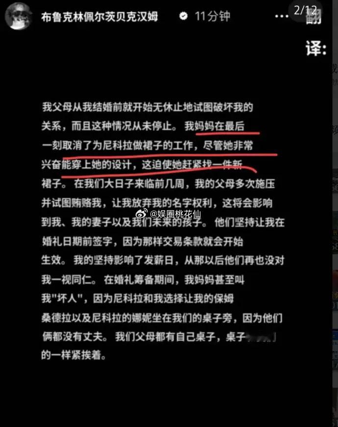 贝克汉姆和贝嫂这俩人,真是让人没想到,感觉跟活在古代似的。本来以为他们家多幸福呢,结果大儿子结婚后,家里就没消停过。大布被说烦了,忍不住写了好长一篇文控诉爸妈就爱作秀。他跟妮可拉在一起七年了,爸妈愣是没接受这个儿媳,总把人家当外人。不光这样,还找来了大布的前女友,故意膈应妮可拉。就连婚礼前一天,还临时反悔,不给儿媳做婚纱,跳舞都要抢风头。这一系列操作,真是让人想不通,太匪夷所思了。