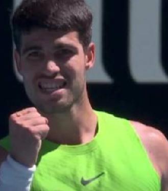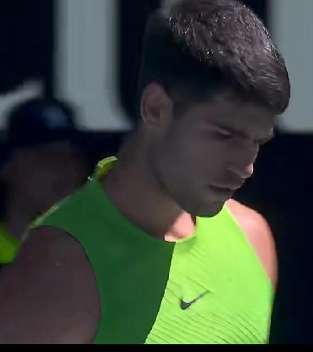 阿卡遭遇汉夫曼强有力挑战! 澳网男单第二轮,阿尔卡拉斯对阵世界排名102位德国选手汉夫曼的比赛激战正酣: 双方历史上两次交手,阿卡均以2-0获胜,阿卡此役取胜当无悬念。 但首盘较量,汉夫曼表现相当出色,与阿卡相持到抢七才分胜负。 阿卡7-6险胜第一盘。单盘耗时一小时十八分钟,足见双方鏖战激烈之程度。 球迷没料到,恐怕阿卡自己也没想到,对付排名百位开外三、四流选手,澳网第二轮打得会如此吃力。
