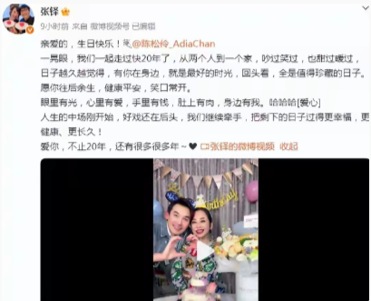张铎为大8岁陈松伶庆生,头戴老婆名字发箍亲吻她,耳朵红到耳根