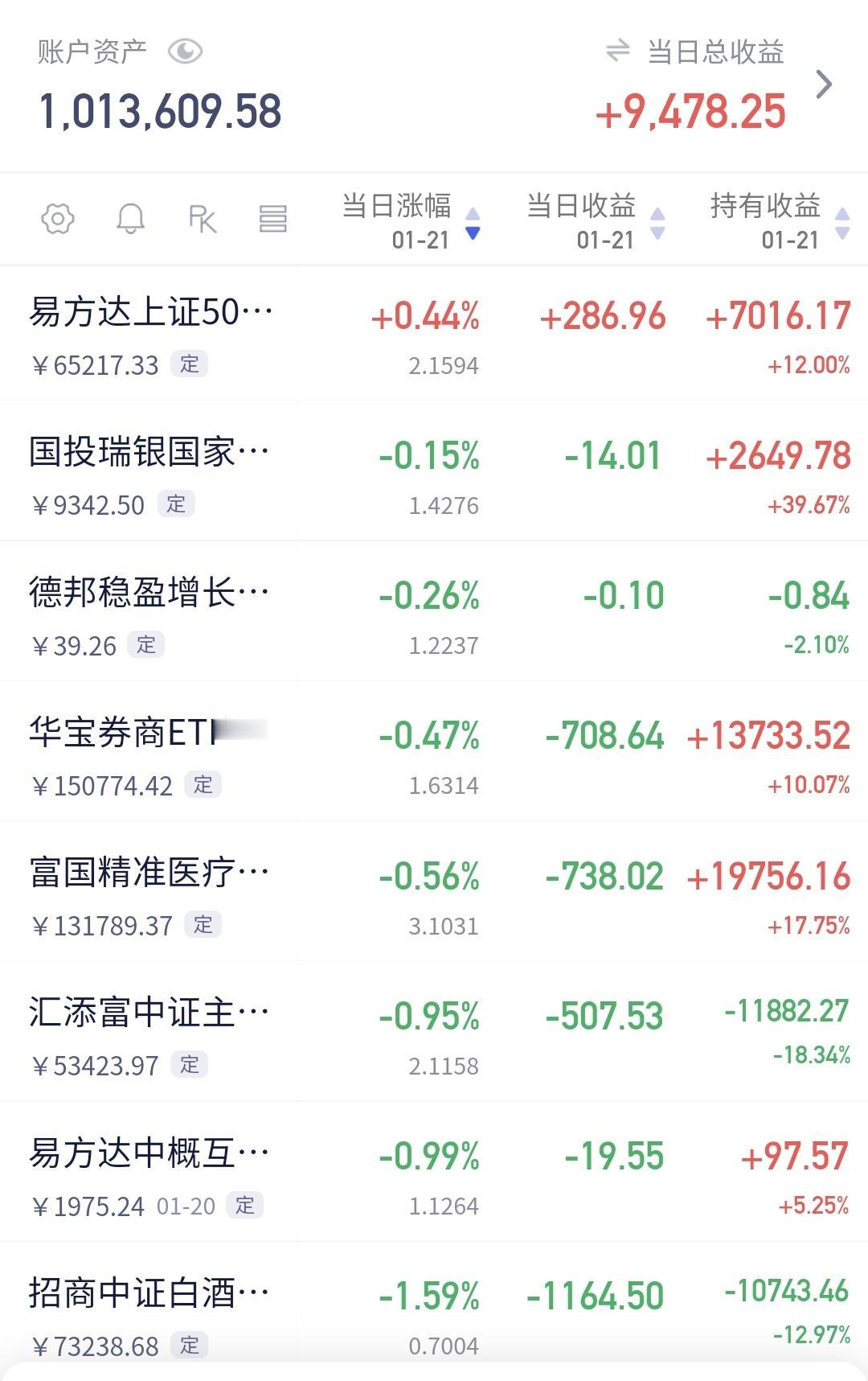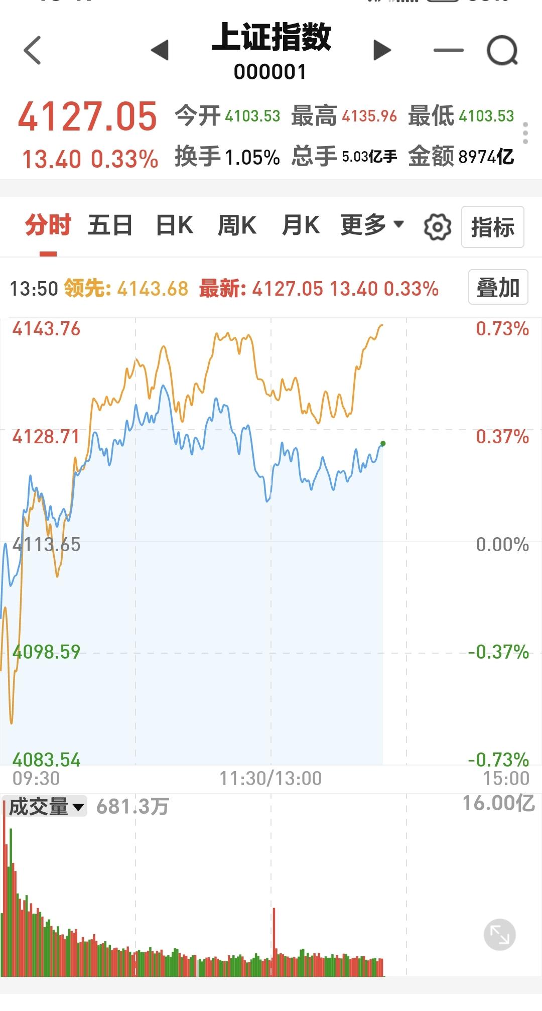 基金:指数继续高位震荡,但现在黄色线上涨速度加快,拉开了与蓝色线之间的距离,这样的情况之下,今天的行情就稳了。 大部分的情况之下,黄色线高高在上的盘面都不会有问题, 这样的盘面即使震荡也会是小幅度的,大幅度跳水的可能性基本上没有,但在相反的情况之下,如果蓝色线高高在上,冲高以后很大可能会有回落,甚至是跳水。 持有的基金中,估值上涨幅度最大的三个板块是:芯片半导体板块,兴全合宜,5G板块,下跌幅度最大的三个板块是:白酒板块,大消费板块,医疗板块,估值整体上涨了9478元。 但盘面现在也有一个问题,到现在为止,相比于昨天的成交量还是萎缩了10%,资金不愿意进场,就不支持市场连续的上涨,这就需要明天能够补上成交量,如果明天成交量继续萎缩,后面震荡的可能性就加大了。 我每天都会分享我的观点,我的观点只代表我个人的看法,不能作为你操作的依据,据此操作后果自负。