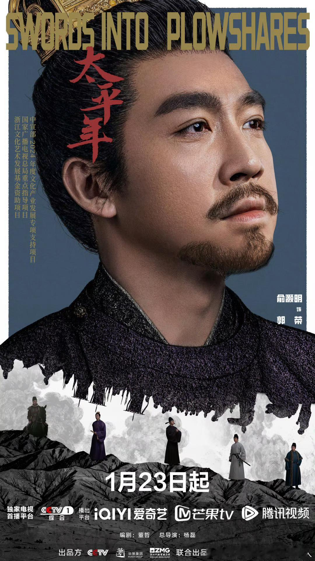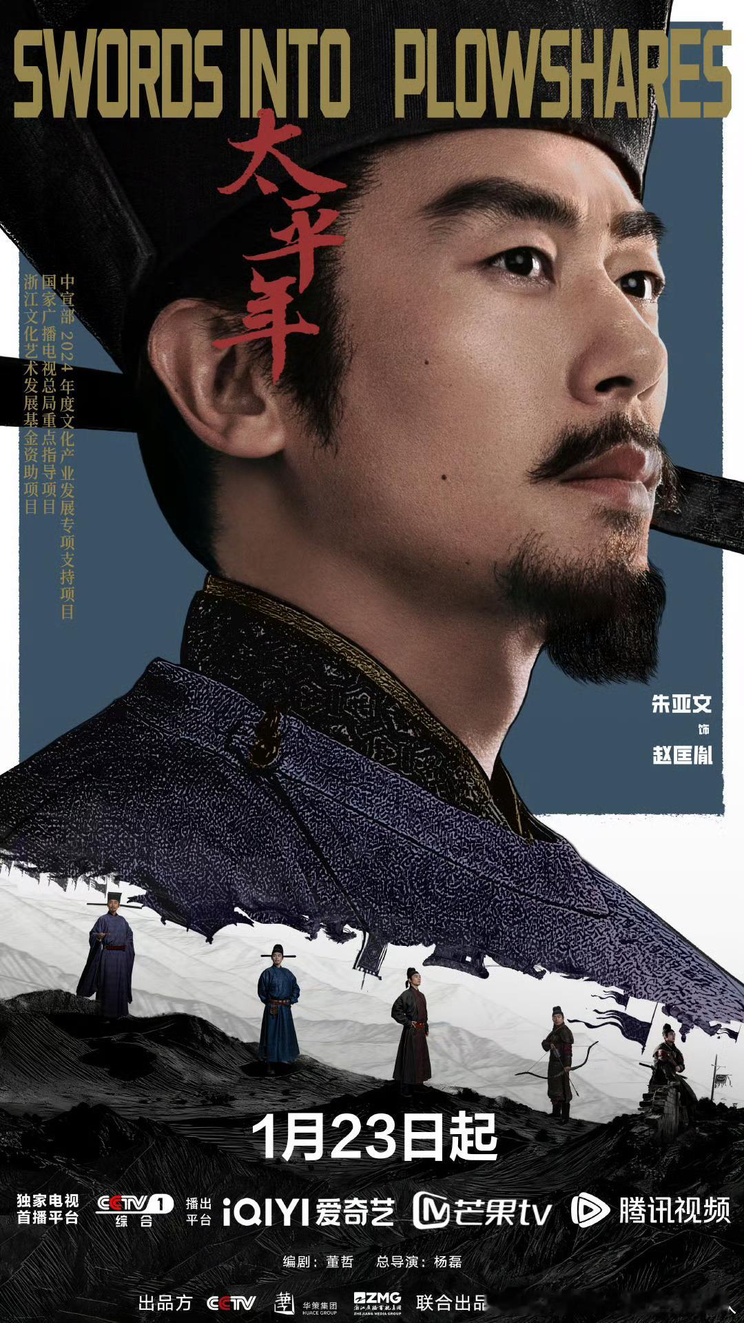 48集古装历史剧太平年 定档1.23央一黄金档,爱奇艺、腾讯、芒果TV联合网播。领衔主演:白宇、周雨彤、俞灏明、董勇主演:朱亚文、倪大红、保剑锋、郝平、蒋恺、梅婷《太平年》描绘了一幅从旌旗猎猎的烽火中原,到市列珠玑的繁华吴越,乱世纷纭、阳谋天下的五代十国史诗画卷。钱弘俶、赵匡胤、郭荣三位有志青年经历了家国动乱、秩序崩溃、生灵涂炭后,逐渐认识到只有国家一统才能摆脱战火国殇。钱弘俶于政权动乱之时扛起吴越国主的重任,“保境安民”,福泽一方;郭荣在尸山血海中重拾国家秩序,壮志未酬,英雄气短;赵匡胤在历史转折之时建立北宋政权,严明军纪,改革弊政,安定民生,慎用兵戈,一扫五代丧乱之颓风,向着天下太平一步步迈进。最终,在北宋统一的大势和天下黎庶的企盼面前,吴越王钱弘俶封疆献土,“纳土归宋”,完成了中国历史上一次伟大的统一。