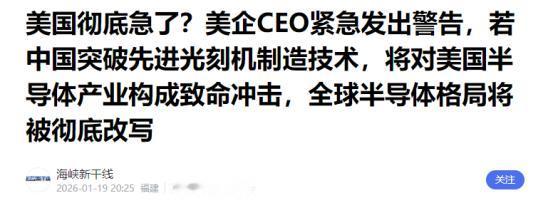 美国彻底急了?美企CEO紧急发出警告,振聋发聩!他说:“若中国突破先进光刻机制造技术,将对美国半导体产业构成致命冲击,全球半导体格局将被彻底改写!”对此,比尔·盖茨早有预言:“我们亲手送出的'王牌'正让中国制造更加伟大……” 以前全球高端光刻机市场,基本被荷兰阿斯麦公司垄断,尤其是能生产7纳米及以下先进制程芯片的EUV光刻机,全世界就阿斯麦能造,还受美国管控,一直不让卖给中国。美国本来以为,只要把光刻机这道关把住,中国半导体产业就永远翻不了身,只能依赖进口设备和芯片。 可没想到,中国偏不按美国的预想走。这些年美国层层加码封锁,不让中国买先进光刻机,也不让相关技术流入中国。结果反而倒逼中国下定决心自主研发,一步步突破技术难关。 现在中国在光刻机领域已经有了明显进展,上海微电子等企业正在攻关浸没式光刻机技术,中芯国际已经开始小批量验证国产浸没式光刻机,2025年的时候,28纳米浸没式DUV设备已经实现批量交付,国产化率超过了85%,虽然和阿斯麦的EUV光刻机还有差距,但已经能满足不少成熟工艺和部分先进工艺的需求,不再是完全被卡脖子的状态。 这就是普劳德为啥急着发出警告的原因。他太清楚了,中国一旦把先进光刻机这最后一道坎迈过去,凭借完整的工业体系和产业链基础,剩下的半导体材料、零部件等环节,很快就能实现全面国产化。 到时候中国就不用再看美国和西方企业的脸色,不用花钱买他们的设备和芯片,美国半导体企业就会失去中国这个最大的市场。 要知道,中国市场占全球半导体需求的40%左右,不管是阿斯麦、美国的应用材料、科磊公司,还是日本的东京电子,中国市场的收入都占他们总收入的30%到47%,失去中国市场,这些企业的利润会大幅下滑,研发投入也会受影响,甚至可能面临裁员倒闭的风险。 其实早在多年前,比尔·盖茨就预言过这种情况。2020年的时候,比尔·盖茨就公开反对美国对中国的芯片出口限制,说这是个短视的坏主意。 他当时就明确表示,美国这么做根本挡不住中国进步,反而会逼着中国自己造芯片,最后美国只会丢掉大量高薪工作,还会失去中国这个巨大的市场。 后来比尔·盖茨又多次重申这个观点,2025年在接受采访时还提到,美国的技术禁令让中国在芯片制造上全力冲刺,现在已经取得了很大进步,华为的芯片、国产人工智能芯片的发展,都是最好的证明。 比尔·盖茨的预言正在一步步变成现实。以前美国半导体企业靠着技术优势,在中国市场赚得盆满钵满,高通、英特尔、英伟达等公司,都依赖中国市场维持高利润。 可自从美国开始封锁,英伟达因为无法向中国出口高端芯片,2023年就损失了超过150亿美元的收入,还不得不裁员调整策略。 反观中国,国产半导体设备商的利润一直在大幅增长,2025年第一季度和2024年同期相比,利润涨幅明显,而外国设备商除了少数几家,大部分利润都在下滑。这就是美国封锁带来的反噬,自己的企业受了重创,反而加速了中国的自主替代进程。 美国之前的想法很简单,觉得靠技术封锁就能把中国半导体产业压垮。阿斯麦前CEO彼得·温科宁2019年的时候还洋洋得意地说,EUV光刻机集合了多个国家的顶尖技术,中国根本做不出来。 可短短几年时间,他就不得不一次次改口,从一开始的笃定中国做不到,到后来承认中国虽然需要时间,但最终能造出比肩阿斯麦的设备,甚至承认中国有大量人才,能创造出西方都想不到的技术解决方案。 阿斯麦现任CEO克里斯托夫·富凯也很焦虑,他预计2026年中国对阿斯麦设备的需求会因为国产替代品的投入使用而大幅下滑,这也从侧面印证了中国光刻机技术的进步。 现在美国终于看清了现实,知道封锁根本没用,反而会搬起石头砸自己的脚。普劳德的警告,本质上就是美国半导体行业的求救信号,他们怕中国彻底突破先进光刻机技术,怕失去中国市场,怕美国在全球半导体产业中的主导地位被改写。 要知道,中国一旦实现半导体产业链全面国产化,不仅能满足自己的需求,还能凭借成本优势,向全球市场提供芯片和设备,到时候全球半导体格局都会被重塑,美国的技术垄断地位就会彻底丧失。 可能有人会说,阿斯麦现在还垄断着EUV光刻机,中国要突破还有很长的路要走。确实,目前阿斯麦在高端光刻机领域还是绝对霸主,EUV光刻机市场占比100%,下一代高数值孔径EUV技术也在推进中。 但中国的进步速度超出了很多人的预期,2025年初国产极紫外光刻机原型机已经完成组装,正在进行高强度测试,采用的技术路线更简洁高效,成本也比进口设备低不少,目标是2026年实现4纳米级量产。 而且中国在成熟工艺上已经站稳脚跟,通过软件优化和技术创新,用现有设备就能稳定生产7纳米芯片,一步步缩小和西方的差距。