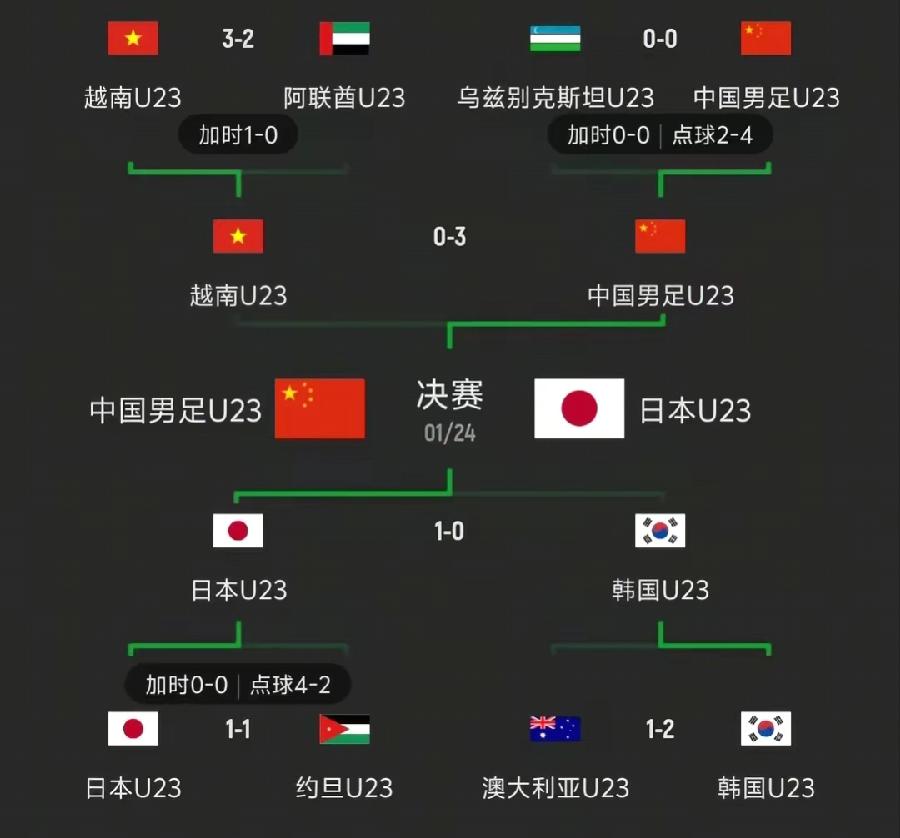 国足U23与日本决赛,输的可能性大!亚洲杯6届赛事,日本豪夺2冠,还是战胜韩国、乌兹别克斯坦强队,实力绝对第一!这次目前日本进了12球只丢1球,小组赛10进球0失球,进攻强防守好,半决赛又1:0韩国,实力不减当年,如果说国足是运气好、战术好,日本则是绝对的实力! 所以中国将是一场苦战!赢面最多30%!还得使用主教练安东尼奥达,踢乌兹别克斯坦,靠李昊门神的完全防守战术,拖入点球拼运气!国足加油!希望有奇迹!
