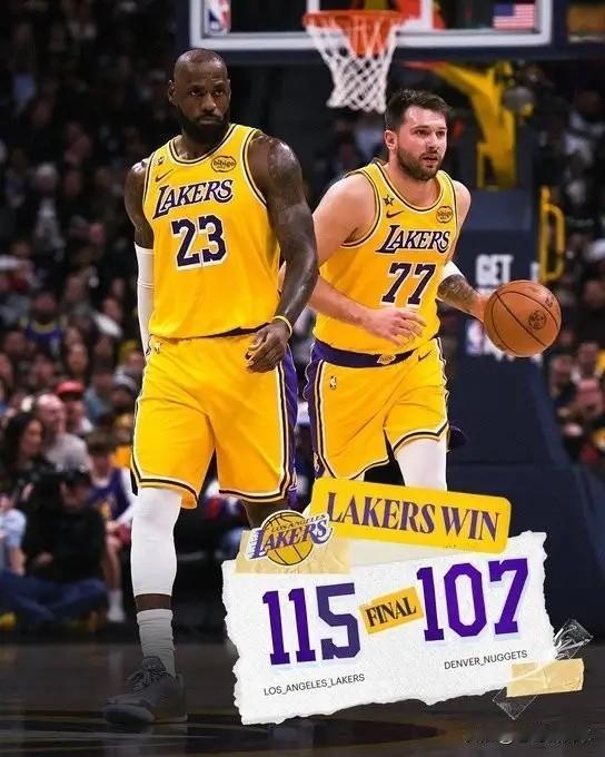 湖人官方真是太懂事了!今天湖人在客场以115:107力克苦主掘金,在比赛结束以后,湖人官方更新社媒晒出了一张赢球海报,结果湖人双星詹姆斯和东契奇携手登上了球队的赢球海报。 平心而论,本场比赛詹姆斯和东契奇的表现都非常出色,其中东契奇在进攻端的表现堪称无解,而詹姆斯在攻防两端都打出了无可挑剔的表现,因此湖人官方让他们一起登上赢球海报,可以说是恰到好处。