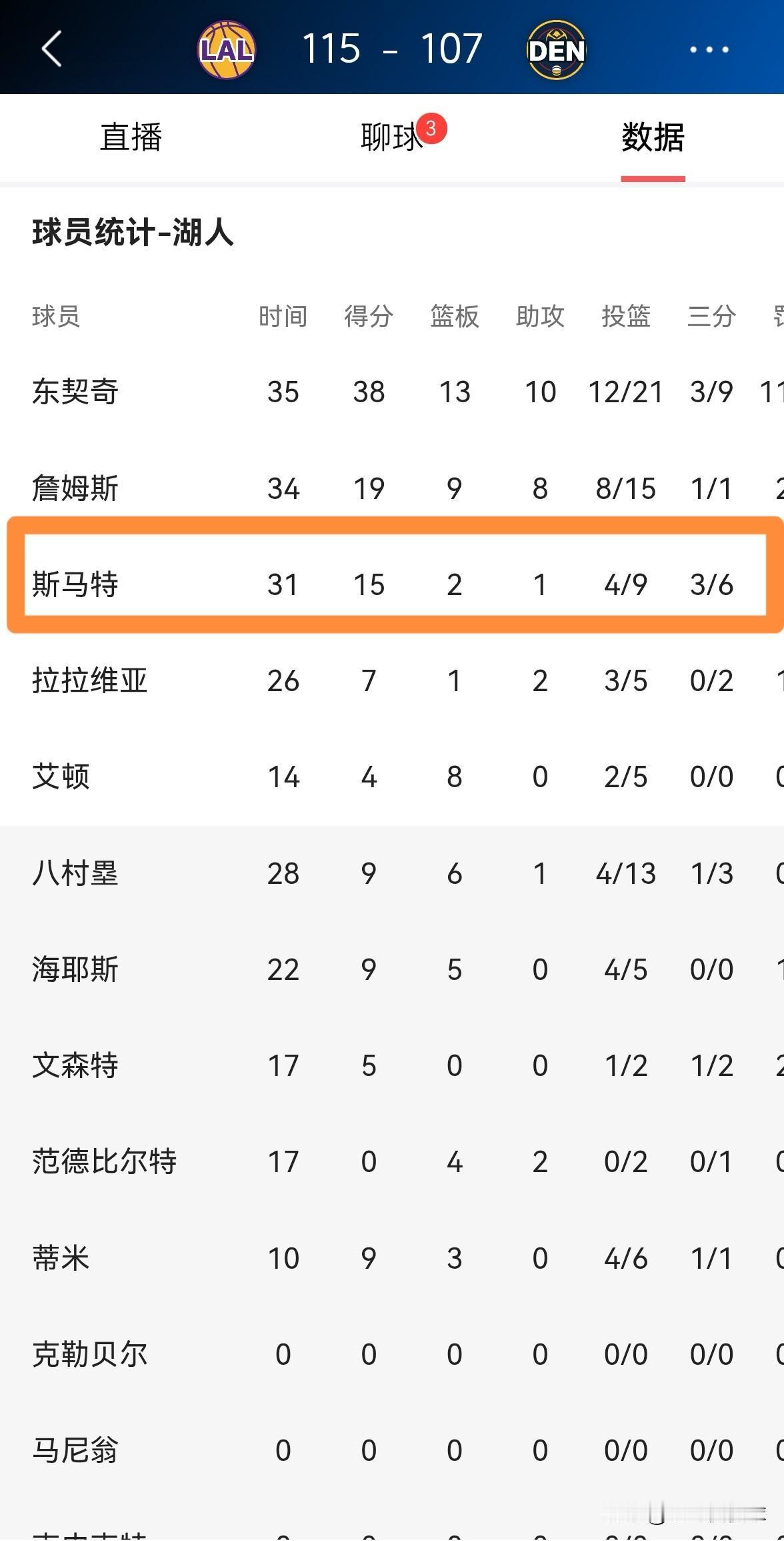 湖人巨星詹姆斯真是太会夸人了!在今天湖人客场以115:107战胜掘金的赛后采访中,詹姆斯聊到了队友斯玛特的表现,他这样称赞道:“当对手试图包夹东契奇时,斯玛特投进了关键球,他的表现真是非常亮眼,毋庸置疑的是,今天他的表现是统治级的。” 值得一提的是,本场比赛斯玛特在上半场比赛中一分未得,但是他在下半场比赛中砍下15分,成为了球队获胜的大功臣,因此斯玛特完全配得上詹姆斯的赞誉。