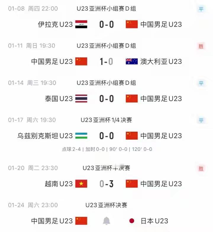 谁说中国U23国足赢球含金量低了?这支中国队天不怕地不怕,专打精锐, 小组赛从西亚打到澳洲,再打东南亚,把伊拉克和泰国拉下马,八强再打到中亚,把亚洲杯冠军乌兹别克斯坦打回老家,4强又3比0横扫东南亚新贵越南队,把队手打得心服口服,不得不承认中国队强大,中国进U23亚洲杯决赛,决赛打东亚亚洲足球老大日本,争取把中国22年前被日本手球夺去的亚洲杯打回来,你说中国U23国足硬不硬气,给不给力,有没有含金量? 小组赛赢澳大利亚,D组第一。 八强赢乌兹,C组第一。 四强赢越南,A组第一。 决赛打日本,B组第一。 “叫日本大队放马过来,老子打的是精锐[碰拳]不是精锐老子还不打呢!逢敌必亮剑,给我干它!”
