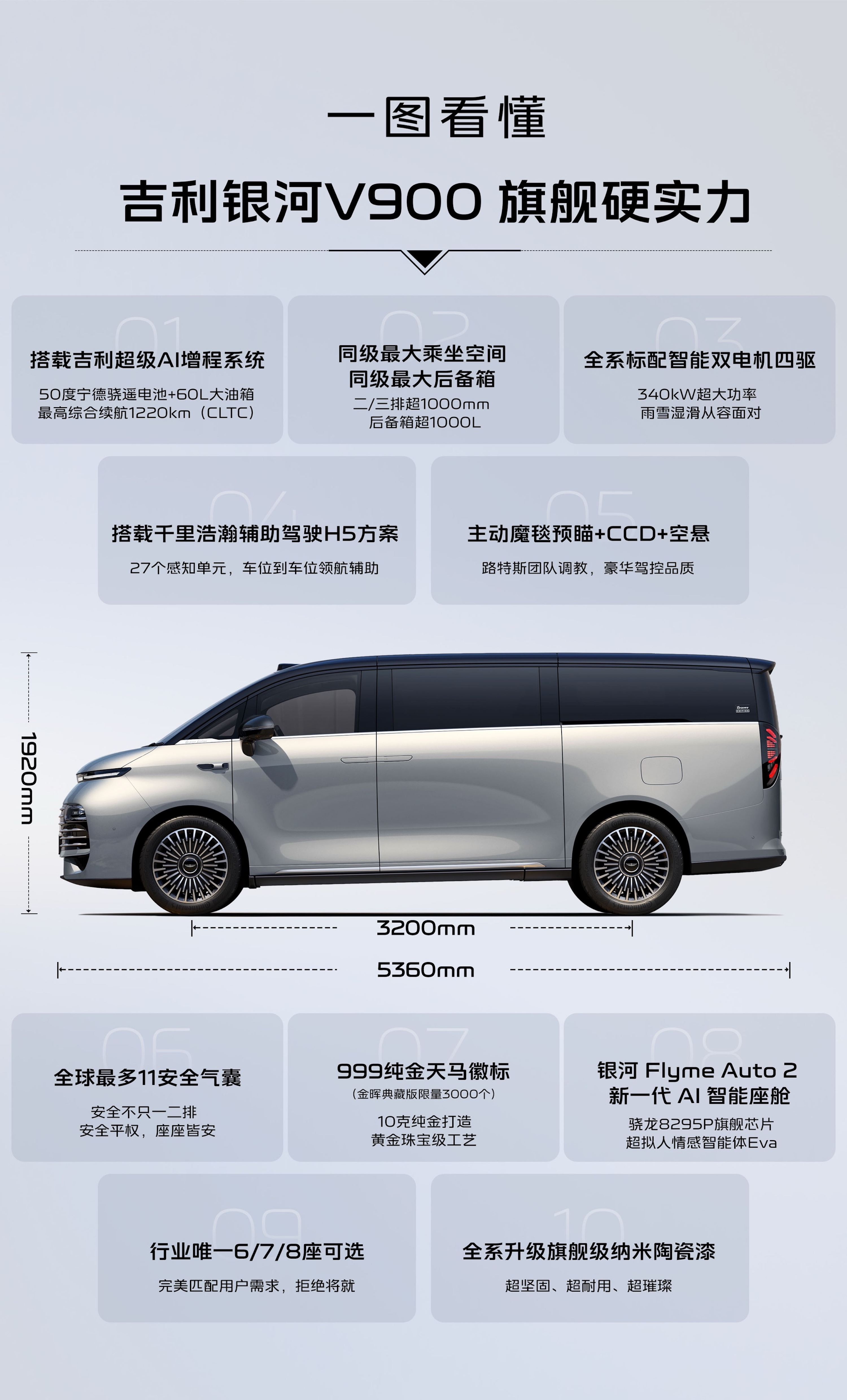 98万起1月20日,吉利银河V900全球上市,定位『AI全场景家庭旗...
