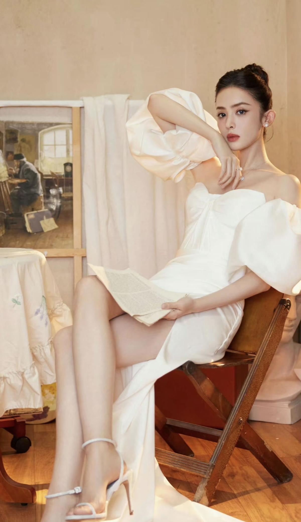 古力娜扎一袭白裙,泡泡袖配高开叉,优雅和性感平衡得刚刚好,这身材比例我慕了[哈欠] 古力娜扎的纯白抹胸裙造型,是清冷大小姐本人了,红唇盘发又美又飒[比心]娱乐明星