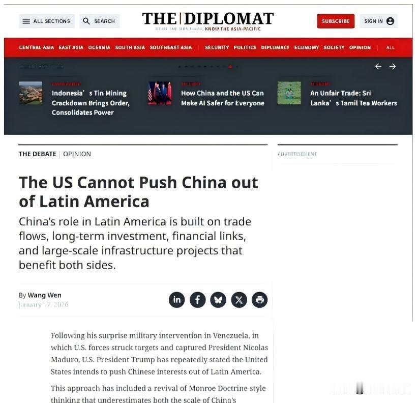 大国博弈拉美,美国想赶走中国,结果呢? 2026年初美军动了委内瑞拉,把马杜罗抓了,说是反恐,其实谁都明白是为了抢油。紧接着美国就喊话整个拉美,说谁跟中国走得太近,就得吃不了兜着走。特朗普政府那套老手段又来了,又是关税又是施压,还让巴拿马别让中企管港口。 中国这边没急着吵架,但也没怂。人大王文在1月17号发了篇文章,直接点出美国这招行不通。不是嘴硬,是事实摆在那——现在中拉之间的生意和项目早就连成一片了,断不了。 过去二十多年,中拉贸易涨了三十多倍,2024年突破五千亿。巴西三成出口去中国,对美国才一成三。铜、大豆、锂这些资源,拉美一半以上都卖给中国。这不是谁命令的结果,是市场自己跑出来的路线。 更实在的是基建。中企在拉美签了三千多亿的合同,修港口、铁路、电站。秘鲁的钱凯港通航后,亚洲货船省下十二天航程,当地一年白捡两亿税收。智利车厘子九成进了中国超市,农民日子好过了,谁会听美国一句话就翻脸? 美国以为自己还能像一百年前那样说了算。可现在它既拿不出钱修路,也给不了大订单。喊几句“别跟中国合作”,结果墨西哥照收中国电动车,巴西继续往中国运铁矿石。 拉美国家也不是傻子。以前被欧洲殖民,后来被美国插手几十年,现在好不容易有点自主空间,怎么可能再听一个外人指挥怎么选朋友?巴西搞金砖合作,墨西哥两边做生意,都是为了自己活得好一点。 中国也没闲着。2025年出了新拉美政策文件,讲清楚不搞霸权,只求合作。同时加快跟南方共同市场谈自贸,推人民币结算,防的就是美国哪天突然卡脖子。 美国的问题是说得太多,做得太少。推特上吼一嗓子就想改全球贸易链,早就不灵了。军事干预犯众怒,经济胁迫又被现实打脸,最后发现盟友都在偷偷跟中国签协议。 中资项目落地的地方,医院、电网、公路建起来了,老百姓看得见好处。地方政府甚至主动招商,山东港都开了直航拉美的船线。这种自下而上的连接,哪是华盛顿下个命令就能拆散的? 说到底,拉美不想当任何人的后院。他们要的是发展机会,不是政治站队。中国给的是合同、贷款和市场,美国给的却是 ultimatum 和军舰。 美国的战略断裂就在这儿——还想当裁判员,可手里没牌了。