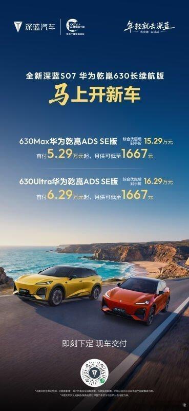 超长续航,一马当先全新深蓝S07 华为乾崑630长续航版吉利银河V900全球上市26.98万起 汽车金价粉丝头条使用攻略