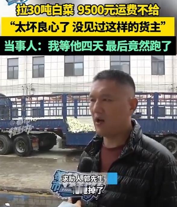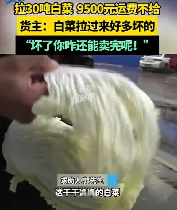 脸都不要了!11月9日,河南,一男子从内蒙订了30吨白菜,并承诺到时给货运司机9500元运费,司机为保证白菜新鲜,连夜赶路,谁知等他送到时,男子却耍无赖死活不肯给运费,之后还玩起了消失,手机多次联系,男子又表示自己这白菜不新鲜,没赚到钱,运费只愿给一半,不然爱咋咋地,这下,司机怒了! 一大早,河南的气温已经明显转凉,记者接到了一通求助电话。电话那头,是一名声音沙哑、情绪压抑却又难掩愤怒的中年男子——郭师傅。郭师傅是名个体货车司机,跑长途货运已经十二年,这次拉的30吨白菜,让他彻底寒了心。 11月7日,郭师傅通过本地物流信息站接到一单活,河南男子从内蒙订购了30吨大白菜,约定运费9500元,货到付款,还特意嘱咐郭师傅务必保证白菜新鲜,尽快送达。 内蒙到河南全程一千多公里,郭师傅深知蔬菜易腐烂,不敢耽搁,装货后立刻启程,全程只在服务区短暂歇了两回,连饭都是在车上对付着吃,就怕耽误时间让白菜变质。为了保鲜,他全程保持车厢通风,还特意检查了多遍货物状况,确保菜叶挺拔有水分,没有萎蔫变质的情况。 11月9日清晨,郭师傅准时把白菜送到河南货主指定的地点,满心以为卸完货就能拿到运费,结清这趟的油费和过路费。对方却说卖完货结账,他想着货主做生意也不容易,没多想就答应了,连书面合同都没签,只凭一句口头约定。可没想到,这一等就等出了麻烦。 两天过去,货主没卖完白菜,找郭师傅商量再卖一天,郭师傅心善,爽快答应了,没提任何额外补偿。又等了一天,白菜还没卖完,郭师傅实在耗不起了,找货主要运费,却被对方一口拒绝。走投无路的郭师傅报了警,民警到场后,货主当着民警的面拍胸脯保证,再卖一天,运费一分不少。郭师傅又一次选择相信,可他没料到,这只是货主的缓兵之计。 第四天,货主终于把白菜卖完了,却跟郭师傅说侄子管账,让他再等几分钟。郭师傅傻乎乎等了半天,才发现货主早就趁他不注意溜了。他赶紧联系货主,对方却换了副嘴脸,说郭师傅拉来的白菜坏了很多,自己损失了一万多,反过来要郭师傅负责,最后只肯给4750元运费,还放话爱咋咋地。 郭师傅当场就懵了,白菜全卖完了,怎么突然就坏了?自己连夜赶路没合眼,就是为了保住白菜新鲜,当时卸车时菜叶都还带着水分,完全符合鲜活蔬菜的标准,这明显是货主故意找茬赖账。按郭师傅的算法,30多吨白菜就是6万多斤,货主按5.5毛到7毛一斤卖,最少也卖了3万多,根本没亏,就是故意赖账。这9500元是他的血汗钱,包含油费、过路费,还有熬夜赶路的辛苦,只给一半,连成本都不够。 其实其实这种货主找借口克扣运费的事,在货运行业并不少见。中国物流与采购联合会的报告显示,半数左右的货车司机都遇到过各类货运纠纷,其中最主要的就是拖欠运费,占比高达75.77%。 像河南货主这样以货物不新鲜为借口扣运费的,更是常见操作,可新鲜度并不是货主说了算,有明确的判断标准。交通运输部等部门明确规定,鲜活蔬菜的新鲜度可参照“叶片或可食用部位有光泽、有水分,无萎蔫现象”来判断,郭师傅全程做好保鲜措施,卸车时货物状态良好,货主的说法根本站不住脚。 郭师傅的遭遇,也暴露了个体货车司机的困境。目前行业里超过六成的货车司机是个体经营,他们抗风险能力弱,大多没有和货主签订正式运输合同,全靠口头约定,遇到货主赖账时,维权特别困难。 这趟9500元的运费,对郭师傅来说不是小数目,相当于他大半个月的纯收入。个体司机收入看似不低,但要承担油费、过路费、车辆维修费等诸多成本,遇到一次赖账,可能就要白跑好几趟。 记者随后陪同郭师傅联系了当地市场监管部门,工作人员表示会介入调解,同时提醒郭师傅,以后接单无论多急,都要签订书面运输合同,明确货物标准、运费金额和结算时间,保留好装货、卸货时的货物状态照片,避免再陷入类似困境。目前这位货主仍未松口,调解还在进行中,郭师傅只希望能拿到属于自己的足额运费,也希望其他同行能引以为戒,保护好自己的合法权益。