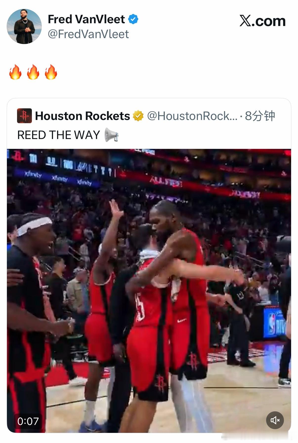 范弗利特转发谢泼德和众人的庆祝视频🎉马刺vs火箭休斯顿火箭休斯顿火箭