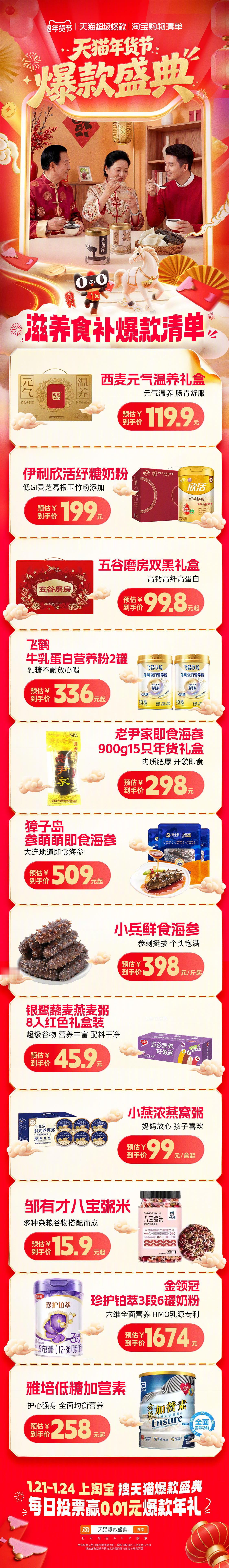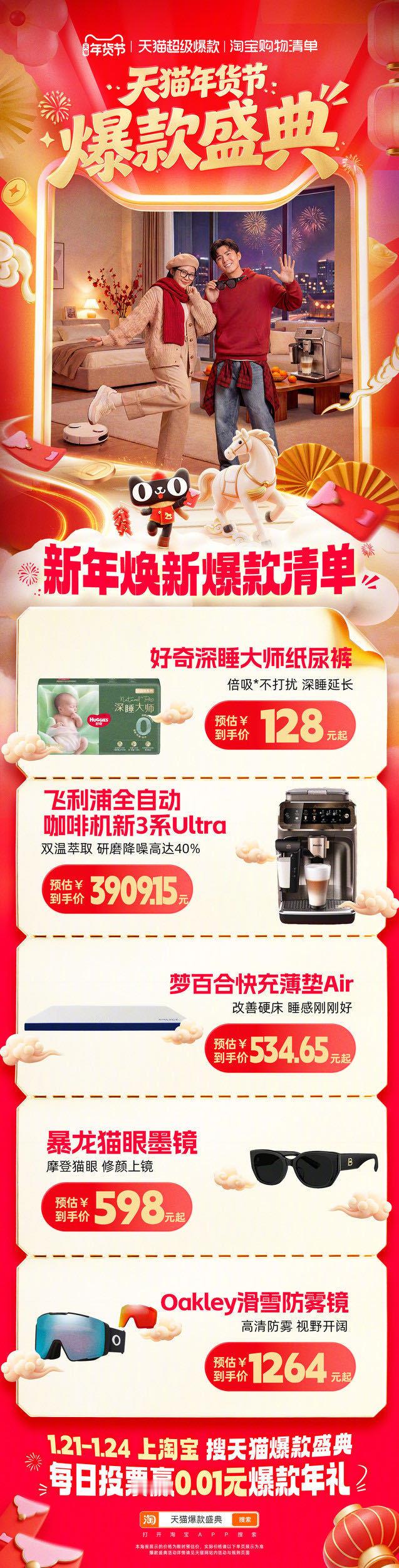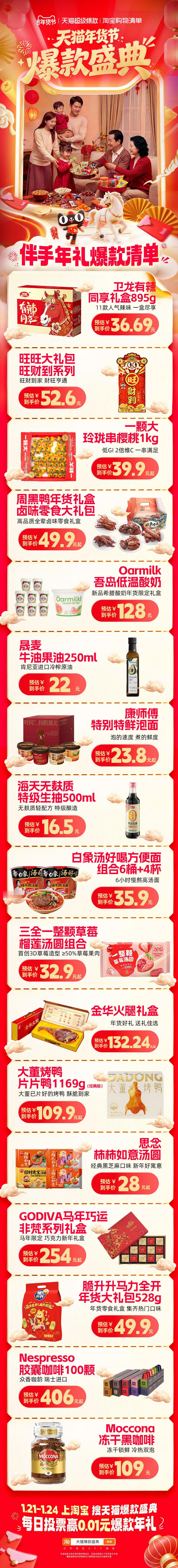 年味儿渐浓,年货还没着落?别慌!🐱年货节爆款盛典来啦!!不管是年夜饭必不可少的饮品,还是走亲戚倍儿有面的礼盒,这里全都有!上🍑🔍天猫爆款盛典,投票就有机会赢0.01爆款年礼!跟着爆款买,年货囤得超安心!天猫年货节爆款盛典天猫年货精选周开卖天猫超级爆款