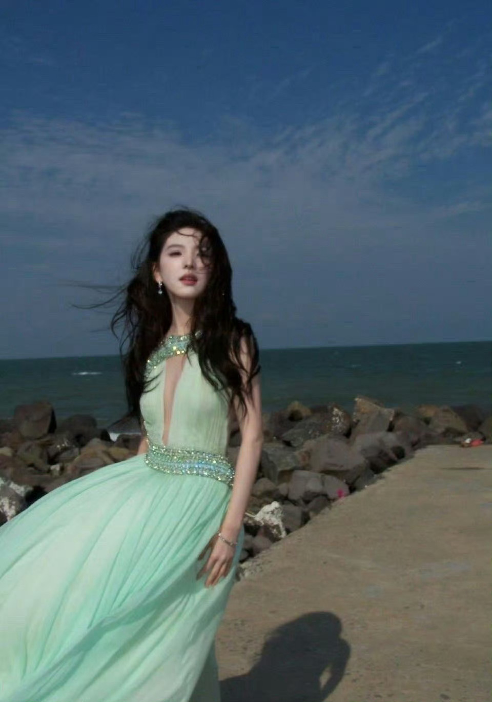 章若楠穿上敞胸礼服,看起来比模特还耐看