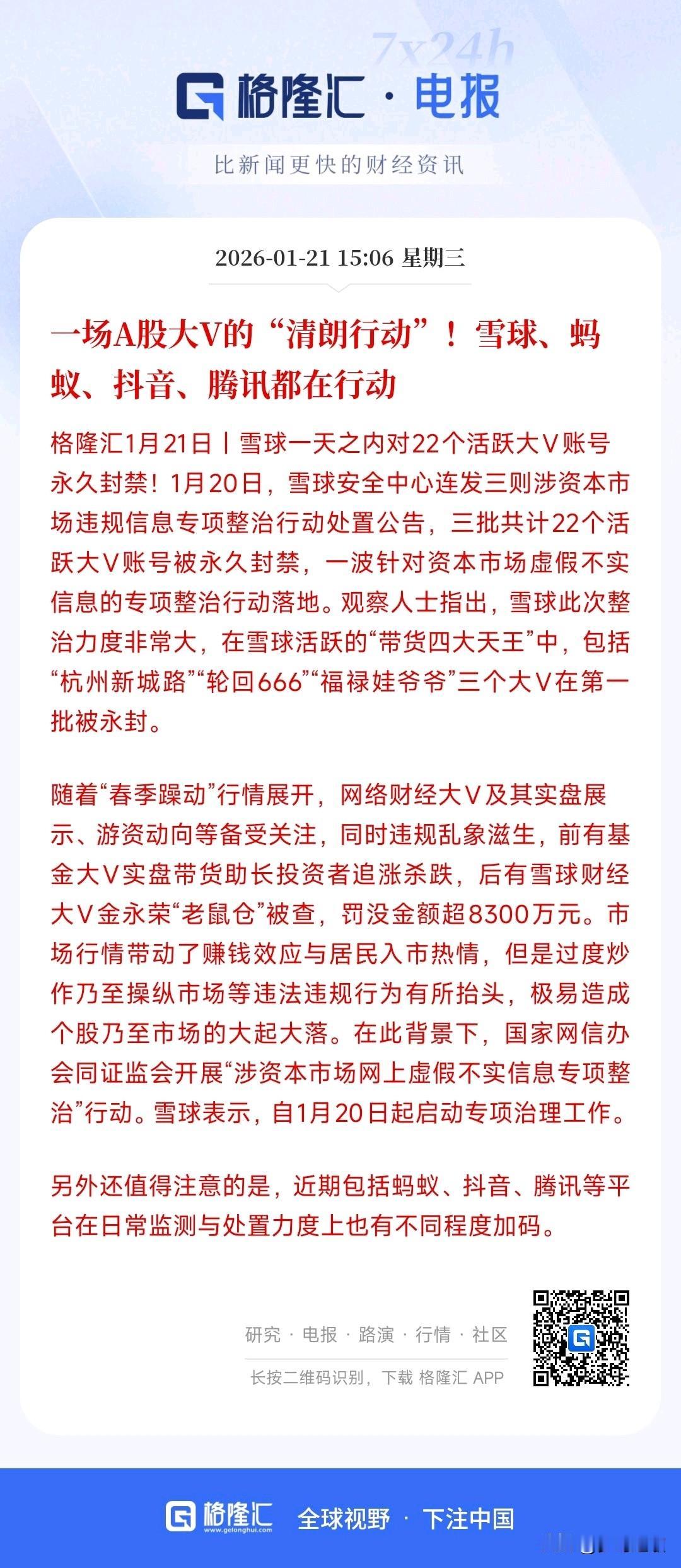 降温其实就是降的这些大V的推荐热情 春季躁动行情不知道有没有,但是财经大V们已经开始躁动了,尤其是那些有过成功的大V已经开始推荐了,这次整治行动很好的打击了这些财经大V,罚款超过了8300万元。 其实这些财经大V在牛市当中确实能够带动市场的热情和成交量,但是到了震荡行情和调整的时候,这些人基本就是散户的噩梦,只要是推荐的都会被主力盯上,成为主力收割的帮凶。 这次整治很好的保护了散户投资者,既能够保护投资者权益,又可以肃清市场。