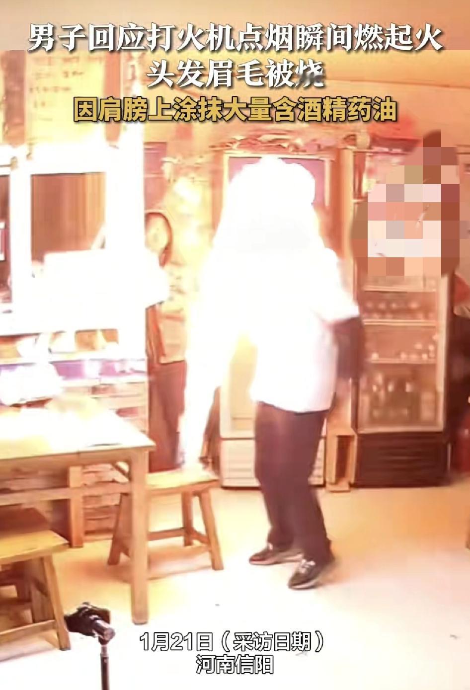 河南信阳一男子在餐馆内点烟时,不慎把眉毛烧着了,起因是男子身上擦了不少含有酒精的黄道益,幸亏是身体无大碍,相信黄黄道益是居民生活必备的药酒,当身上擦有这样的药油的时候,平时点火就要注意了。大家对于这一点防范可能也没有很在意。