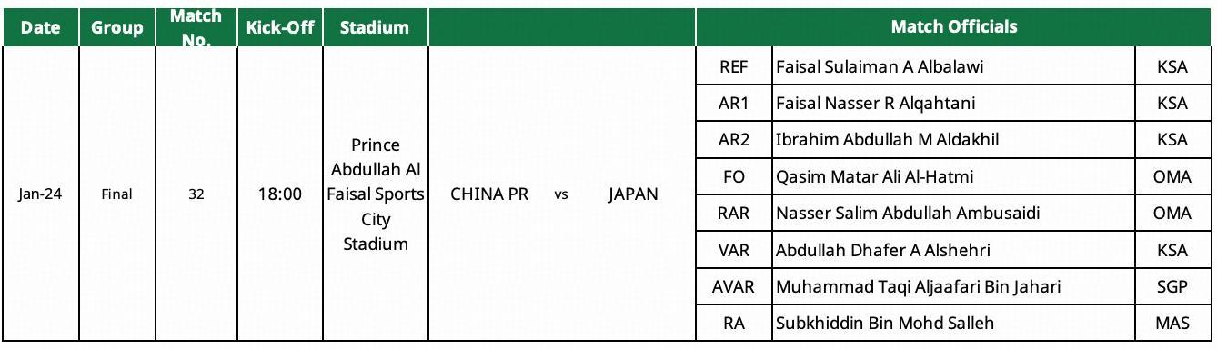 【沙特籍主裁判执法U23决赛中国vs日本】亚足联官网公布了U23亚洲杯决赛中国v