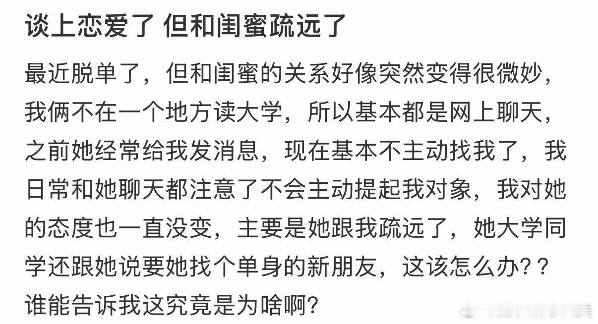 我谈上了恋爱,但与闺蜜的关系变得疏远。