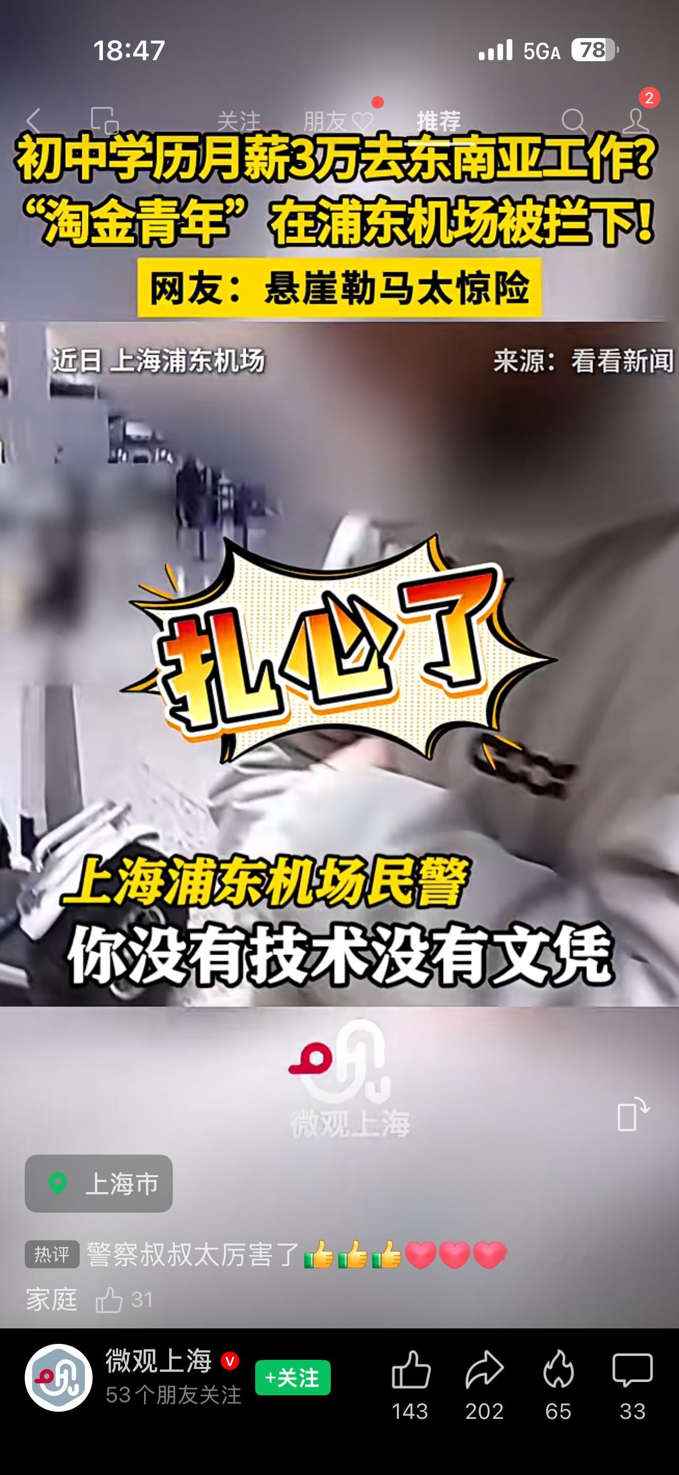 我上次偶遇了一个人,浦东机场,他去金边,也被警察拦下来了。是有这么多人特别容易相信一个陌生人,而不是父母朋友。