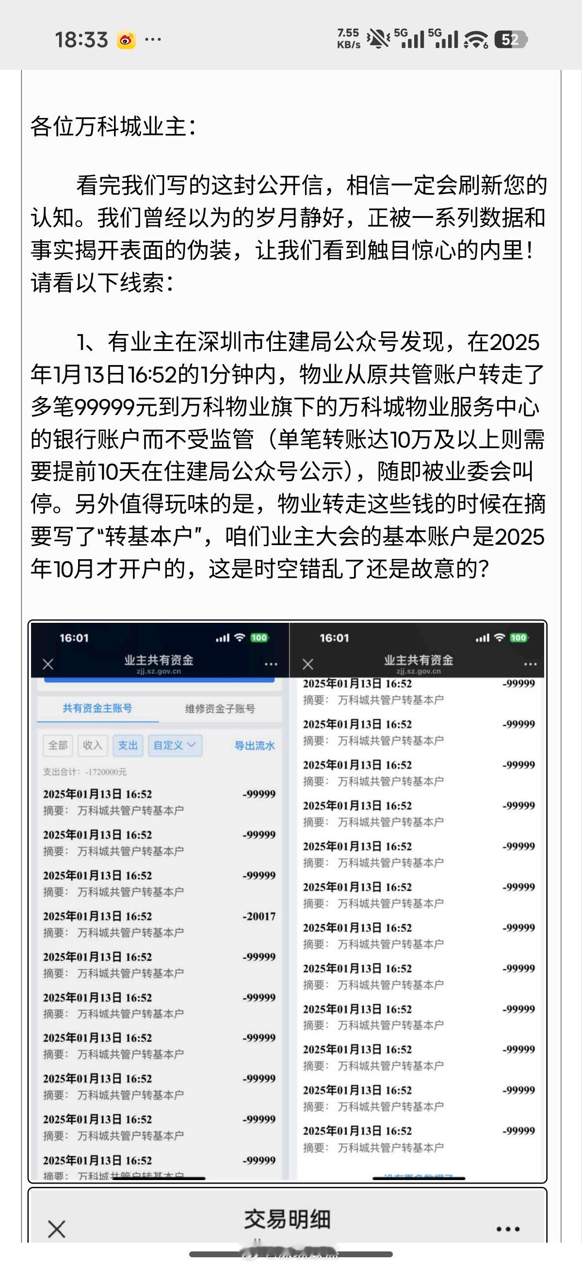 刚看了深圳万科城业主发的公开信,部分万科物业中饱私囊,偷偷弄了业主好多钱。。。物