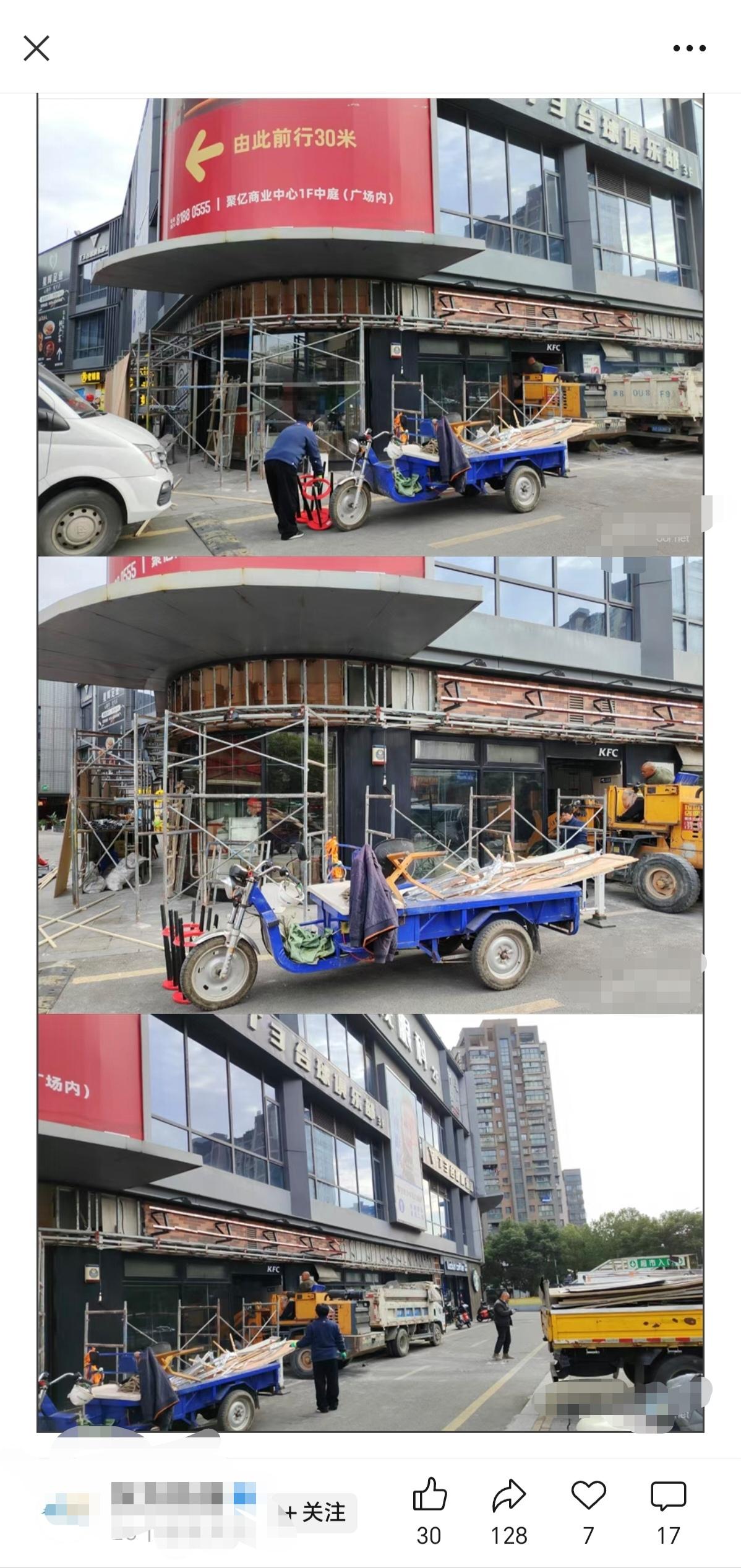 我说这几张照片,怎么那么熟悉呢!原来是我1月12日拍摄的,鄞州区长丰肯德基店拆除装修的照片。我发布在今日头条后,被网友引用到其它网站了。然后某论坛又引用了该网友的报道,就出现了这神奇的一幕。 当时,是出于好奇,不知道这家肯德基拆除后,是重新装修,还是退租,就写了一篇微头条。没想到照片还上了某论坛,微信公众号的新闻板块了。 不过也没关系,网友能引用,也是一种缘分。这说明周边居民,也在关注长丰这家,开了七八年的肯德基店的情况。 今天下午我路过的时候,看到的是,围挡张贴了肯悦咖啡的广告。店铺里面,也在重新装修了。那就是意味着该店铺是重修装修升级,不是退租!应该很快就可以重新开业了。