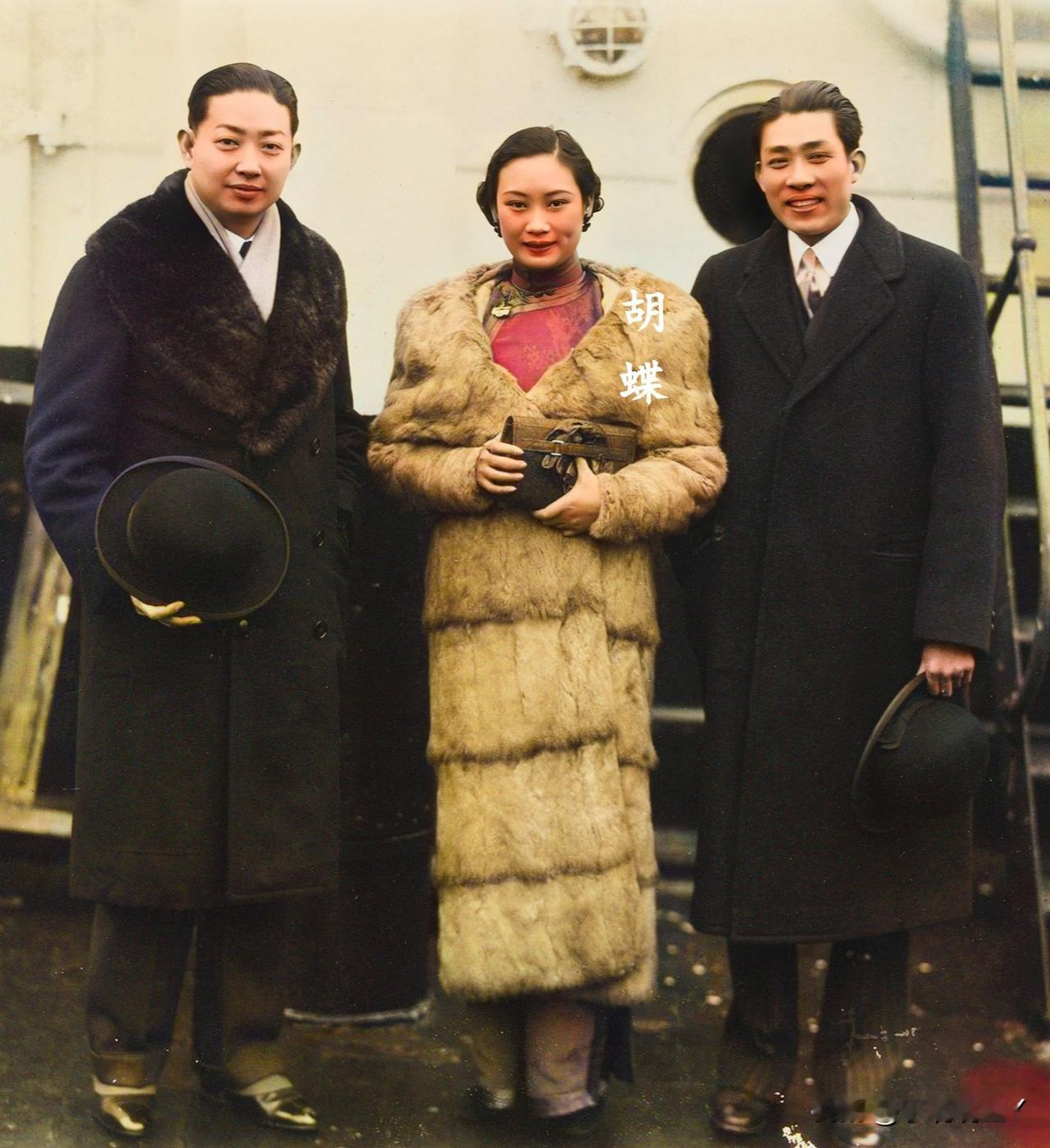 这便是民国第一美女胡蝶年轻时的真实模样,大家瞧瞧!这而非演戏,确是货真价实的本人,容貌清清楚楚一目了然!这张珍贵的老照片摄于1935年,彼时胡蝶27岁,身穿裘皮大衣与梅兰芳、吴铁城站在前往苏联的邮轮上,气质非凡,非常的漂亮!她的容颜确实是惊艳了时光。