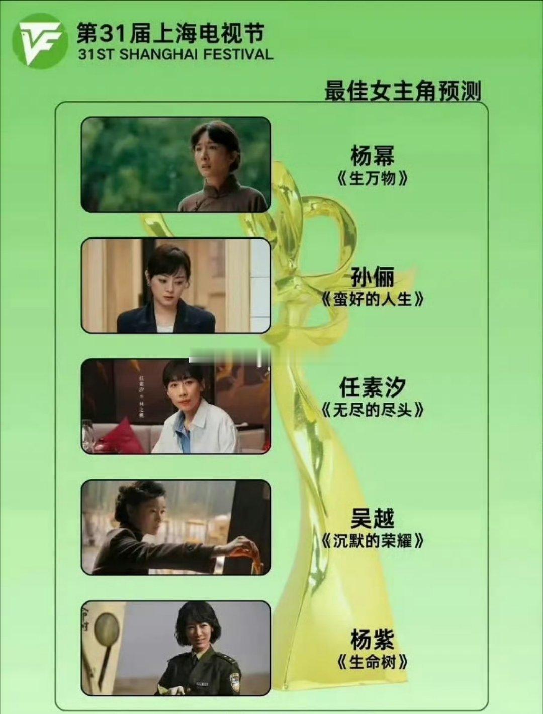 网友预测,下一届白玉兰的视帝视后入围名单,符合你们预期吗最佳男主角:黄晓明 于和伟 黄轩 秦昊 肖战最佳女主角:杨幂 孙俪 任素汐 吴越 杨紫 我印象中,赵丽颖《小城大事》、赵露思《许我耀眼》也是网友之前提名比较多的