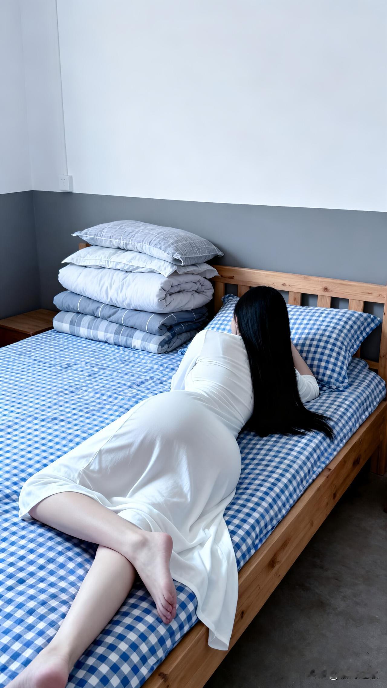 为什么一张床就能拍出治愈系大片? 这组照片用最日常的场景,给出了温暖的答案。摄影师以背影入镜,让人物松弛地俯卧在蓝白格纹床品上,垂顺的长发与白色睡裙的柔和线条,共同营造出慵懒的氛围感。 半墙灰与白的极简配色,堆叠的枕被与木质床架,强化了家的安稳感。这种不刻意的姿态与生活化的场景,跳出了摆拍的生硬感,传递出“独处时也能温柔自洽”的松弛美学。它让我们明白,真正的治愈感从来不在远方,就藏在午后卧室的一缕阳光里。卧室治愈美照 治愈系房间卧室 柔美床榻写真 卧室氛围感图片