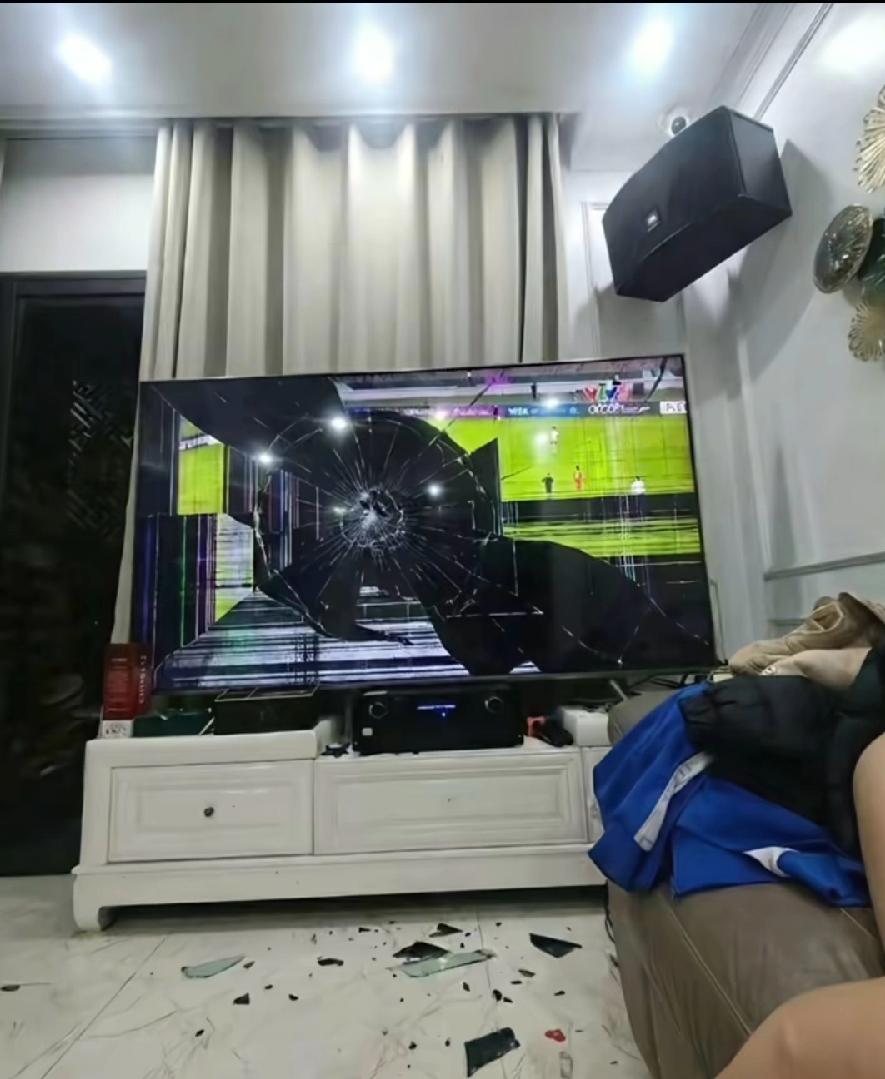 越南球迷怒砸电视,这一幕中国球迷太熟悉了!都是兄弟国家,爱国感情一模一样!有一个疑问,这电视什么品牌的?屏幕都稀巴烂碎了,还没断电,还有图像?不会是中国品牌的吧?越南足球不行,电视制造也不行,正巧拿中国电视出气?不过还是挺理性的,没有拿自己老婆出气!