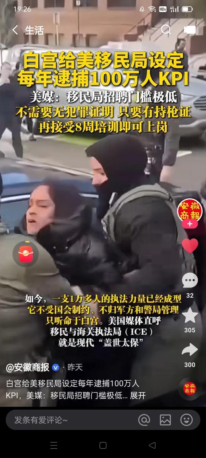 美国版‘盖世太保’暴力驱逐移民 特朗普大建疯人院‘抹杀’流浪汉 *也许是为了掩盖美国斩杀线的真相,特朗普下令要扩建疯人院,以便彻底抹杀大街上的流浪汉现象。 美国过去自诩为‘人权卫士’,其实是‘人权杀手’!流浪汉大多数都是经济困顿造成的,现在总统却要把这些无辜的人民关进疯人院! 要知道美国的疯人院几十年来一直存在着灭绝人性、暗无天日的丑闻!诸如 1正常人被家属强制关进疯人院,遭受非人的虐待。 2管理者惨无人道地切除‘病人’的脑前额叶,相当于活体实验! 3虚构治疗项目,诈骗‘病人’的财产。 真是‘杀人不见血’,严重践踏侵犯了天赋人权,哪有一丝一毫民主自由的气味? *同时特朗普对外国移民也是毫不手软,他大力扩充了‘移民与海关执法局’队伍,这个机构独立于军警系统,但是拥有抓捕处置非法移民的全权! 特朗普政府甚至给移民局下达了每年逮捕100万人的超级任务! 前几天移民局人员连开三枪、打死了一个抗议的白人。 难怪美国媒体愤慨惊呼~特朗普领导下的移民局简直就是当年希特勒手下的盖世太保!
