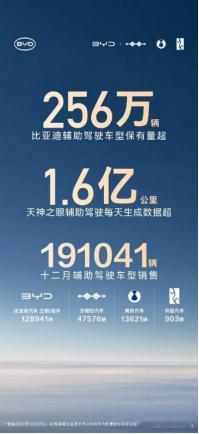 2025过去了,迪子这个天神之眼计划推进的怎么样了呢?我只能说绝对是闷声发大财,走在正确的道路上。12月单月新增19万多台天神之眼终端,日均回传辅助驾驶里程数据激增至1.6亿公里——比上个月多出整整1000万公里!光是增量部分就相当于每天多绕地球赤道跑249.5圈,而且是天天如此、持续不断。按照这个狂飙突进的节奏,2026年天神之眼终端保有量突破500万台就是时间问题,天神之眼车型持续热销。更关键的是,用户激活率已高达94.13%,智能泊车也达到85.97%,说明大家不是买了就扔,而是真用、常用、爱用。高活跃+高渗透,数据飞轮越转越快。届时日均数据回传冲上5亿公里也是水到渠成的事了。而海量真实道路数据正是智驾迭代最硬核的燃料——比亚迪手握行业最大数据底座,就必须“狠狠地”OTA、“狠狠地”进化!用数据跑出速度,用体验跑出质量,用规模跑出那个谁都追不上的“遥遥领先”。全民智驾,不是口号,是每天数以亿计公里实打实跑出来的护城河!大v聊车比亚迪