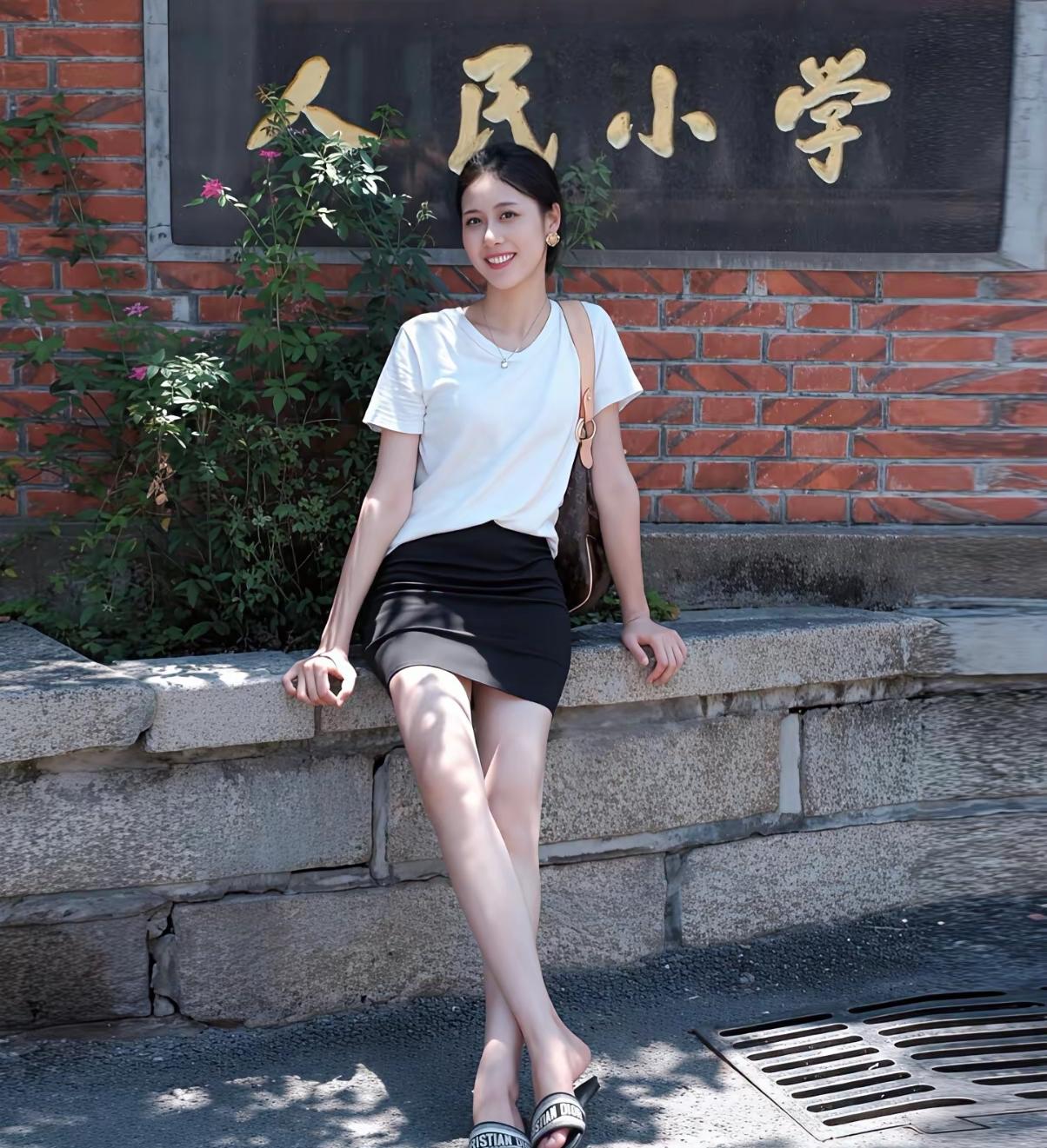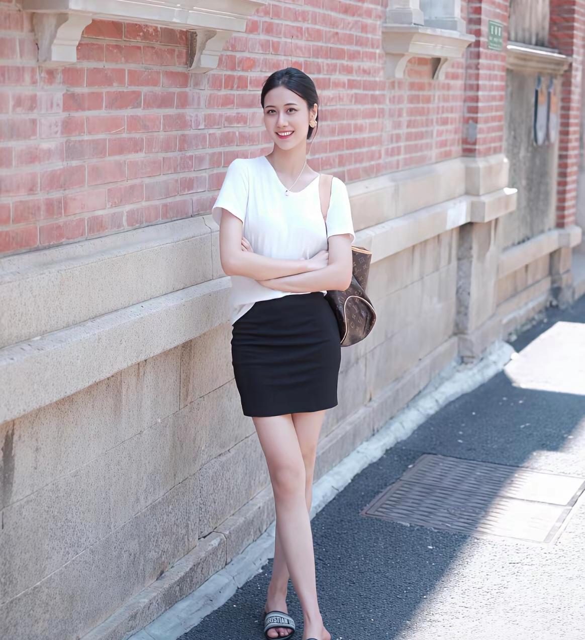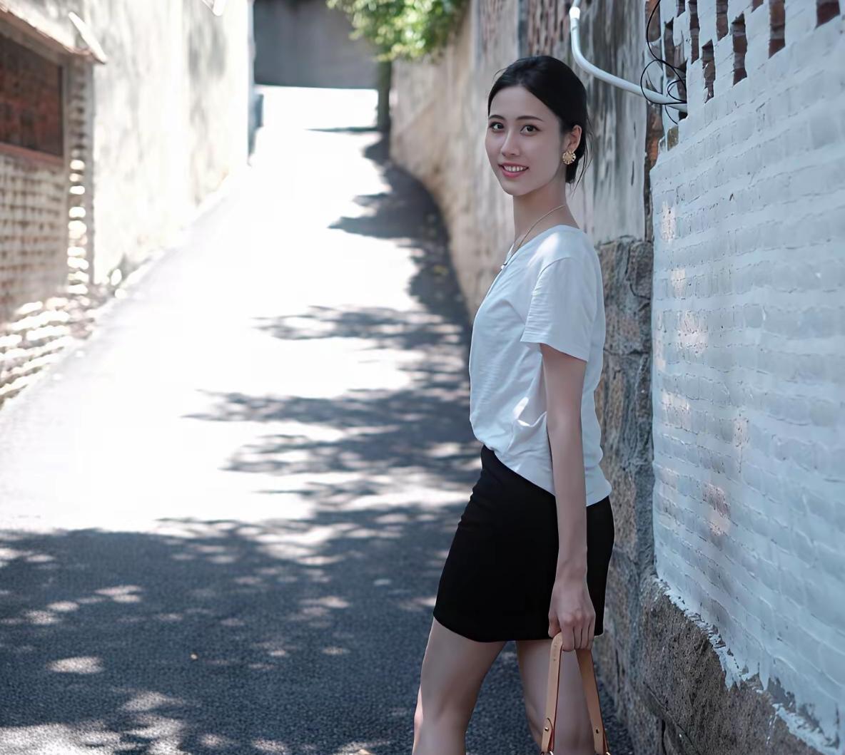 夏日穿搭/海边漫步,白T恤与黑裙的完美搭配,轻松自在,享受阳光与海风。