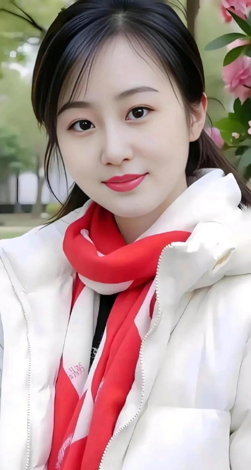 冬日暖阳下的甜美笑容,红白相间的围巾,温暖如你。🌞💕